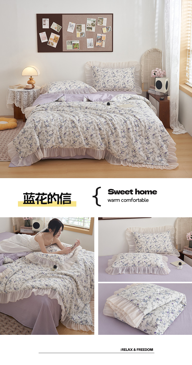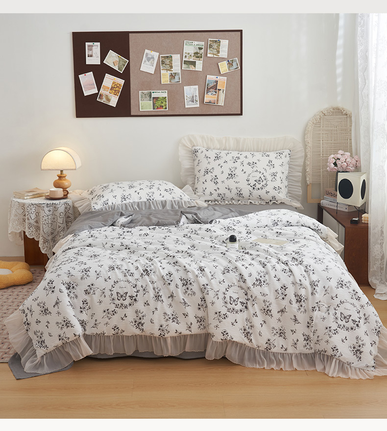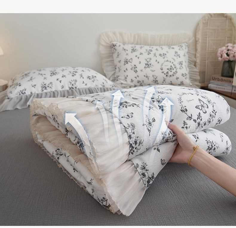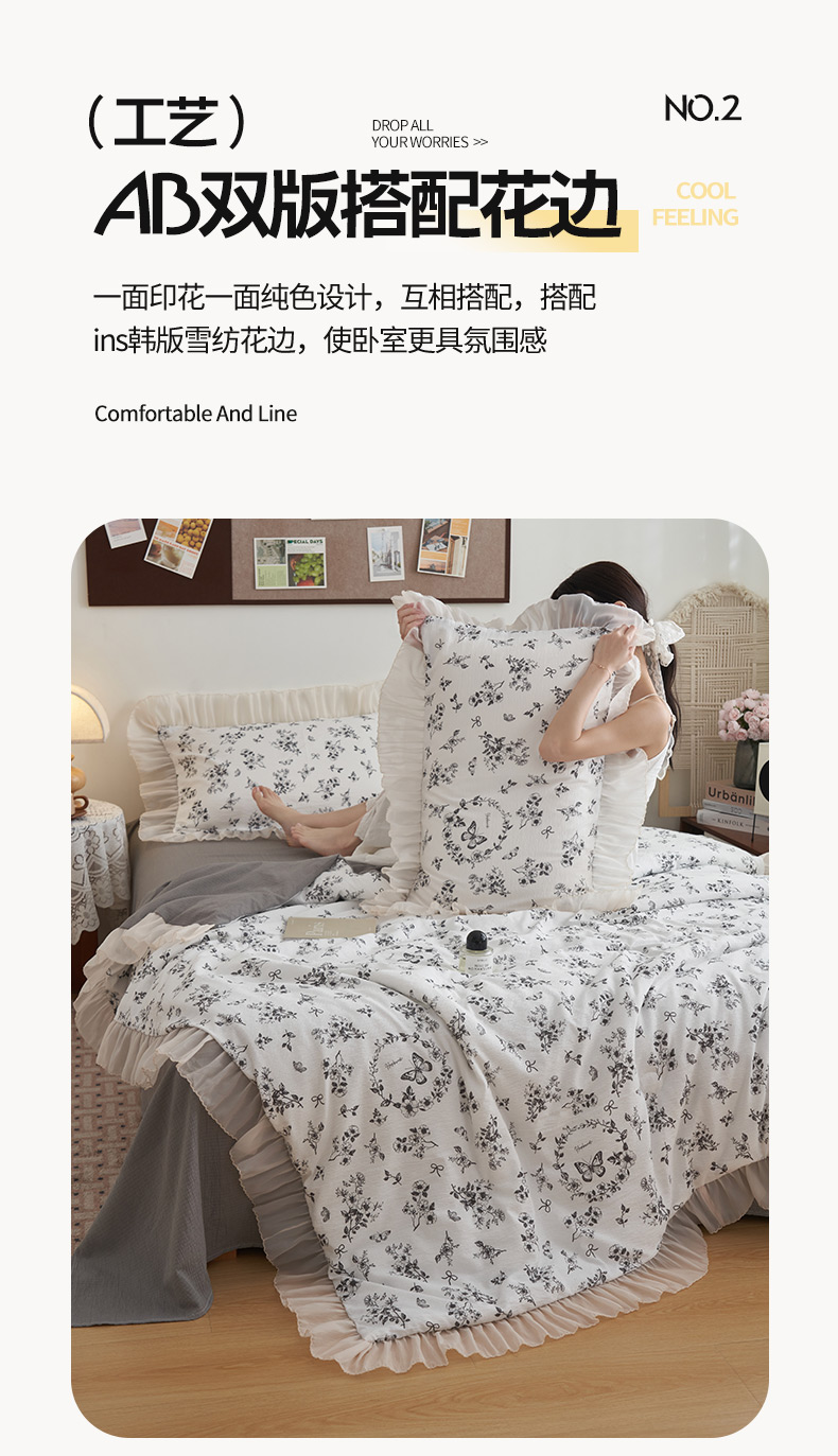 当前位置: 91家纺网 > 商品网购 > 床品套件 > 四件套 > 夏被四件套 > 晨曦家纺 2026新款皱雾纱水洗夏凉被夏被四件套少女ins风韩版 素墨蝶语