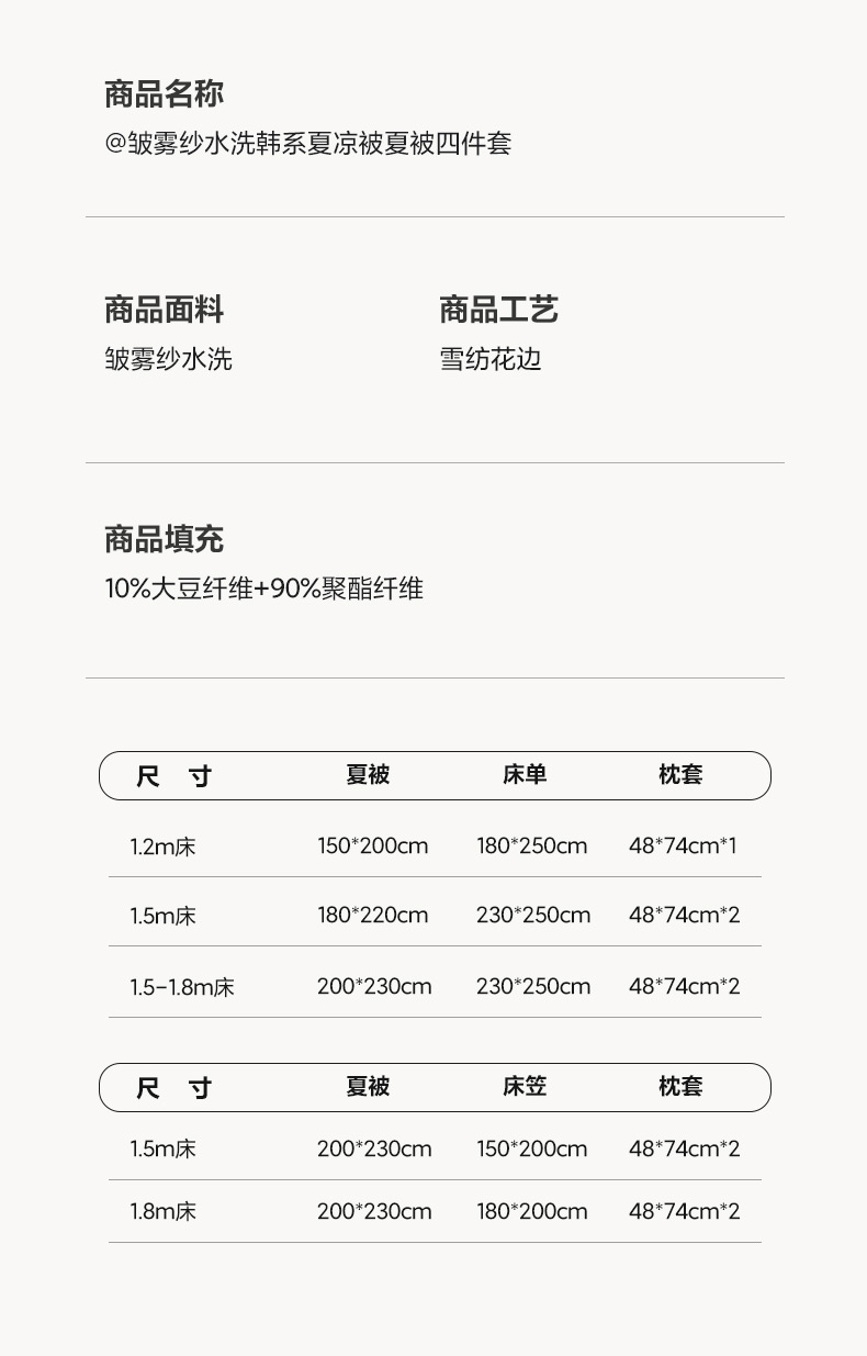 150*200cm夏被1.8床笠四件套 | ¥68.00 |