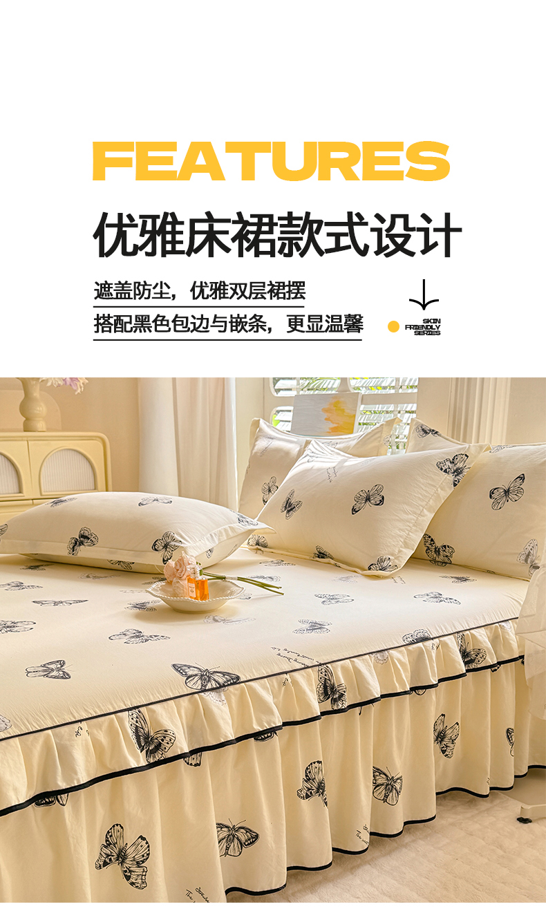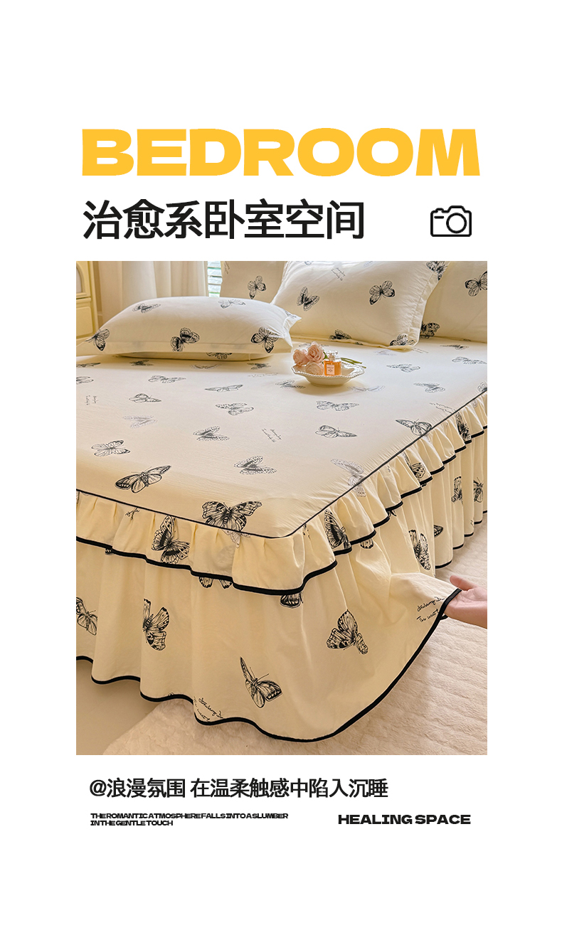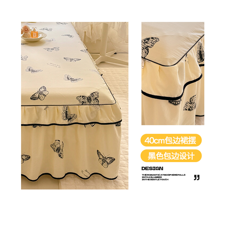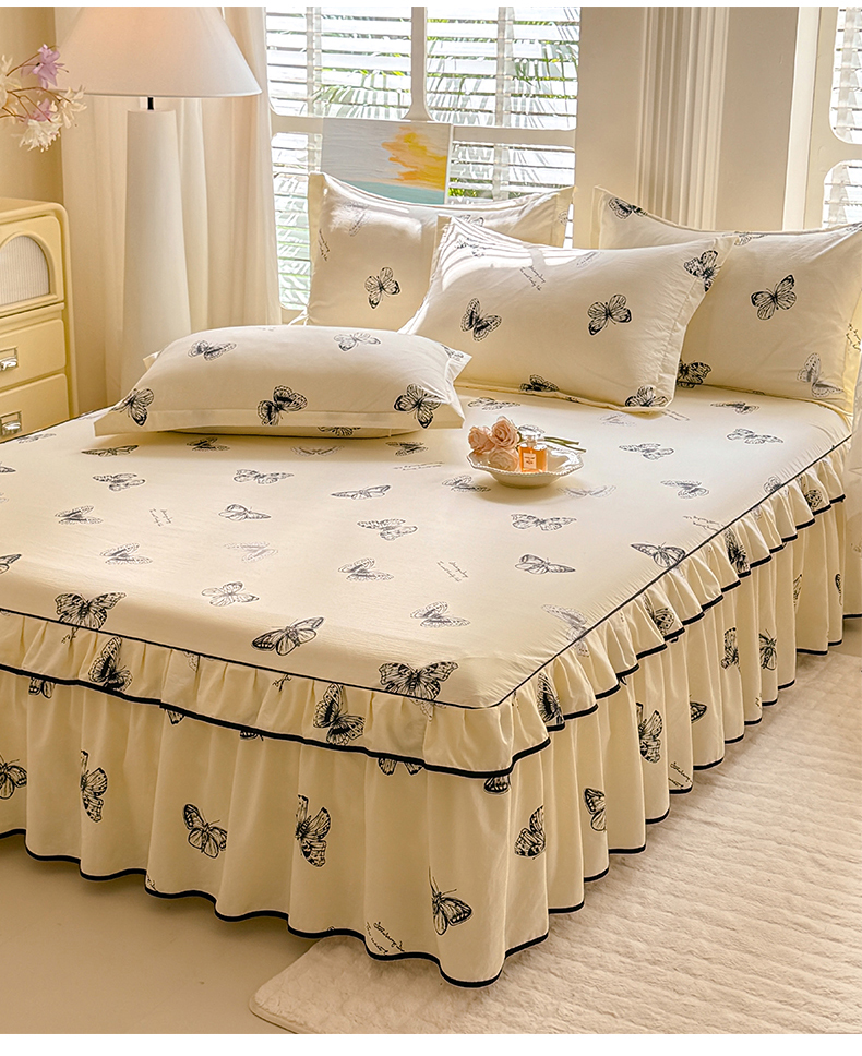 • 91家纺网 家纺一手货源 找家纺 优家居 2026新款A类水洗棉床裙单件三件套皱皱纱韩版公主风花边床罩直播爆款外贸定制 蝶舞芳华