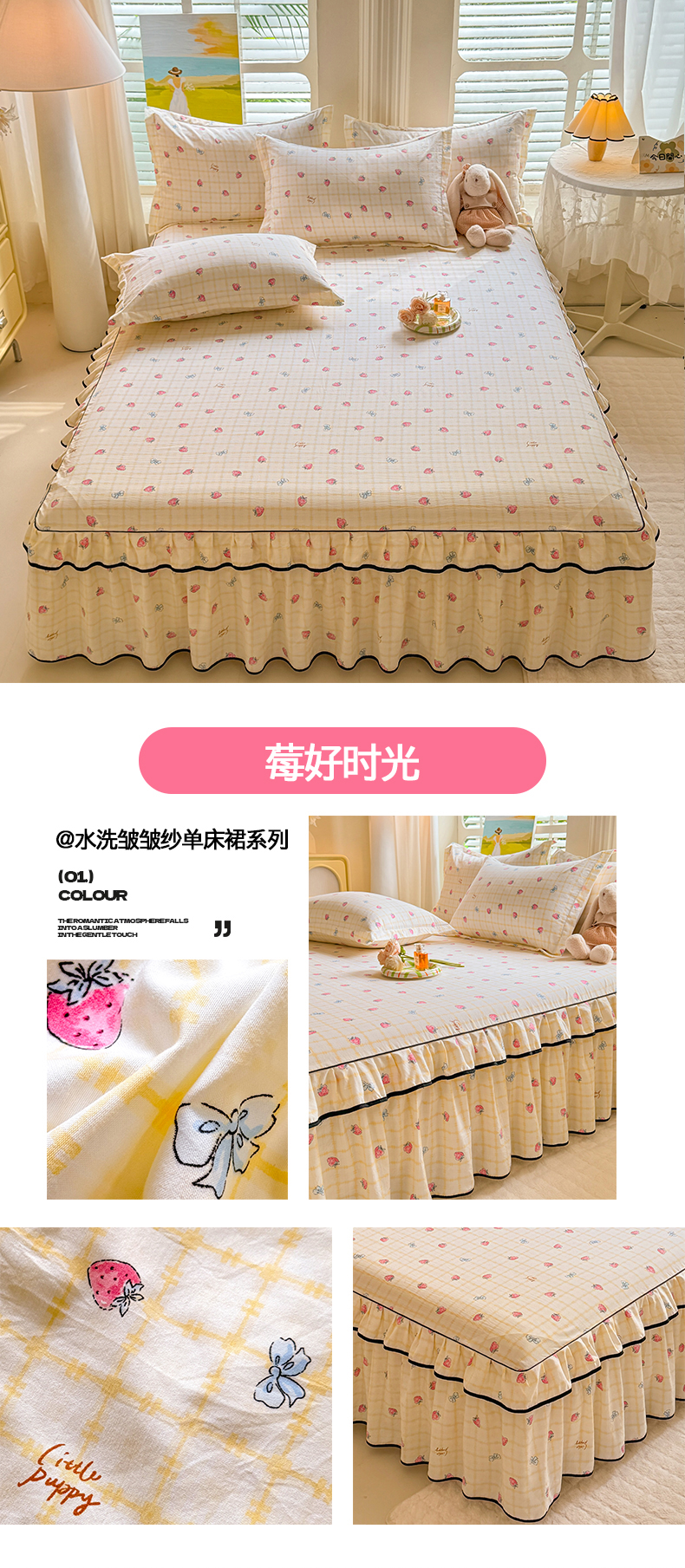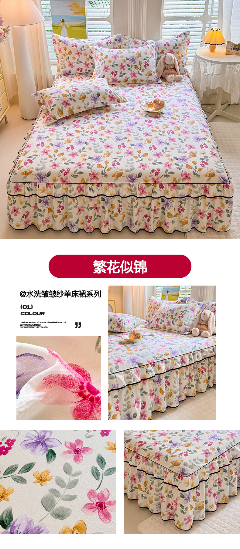 (总)优家居 2026新款A类水洗棉床裙单件三件套皱皱纱韩版公主风花边床罩直播爆款外贸定制,木槿花,一口葡萄,欧若拉,小苍蓝,梦华录,海棠花颂,爱心蝴蝶结,巴宝格-咖,豹纹-咖,蝶舞芳华,繁花似锦,粉色猫猫,粉雾结语,花花田园,莓好时光,秘园絮语,陌上花开,紫雾花园