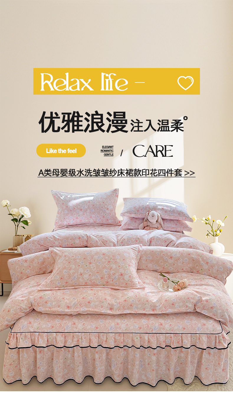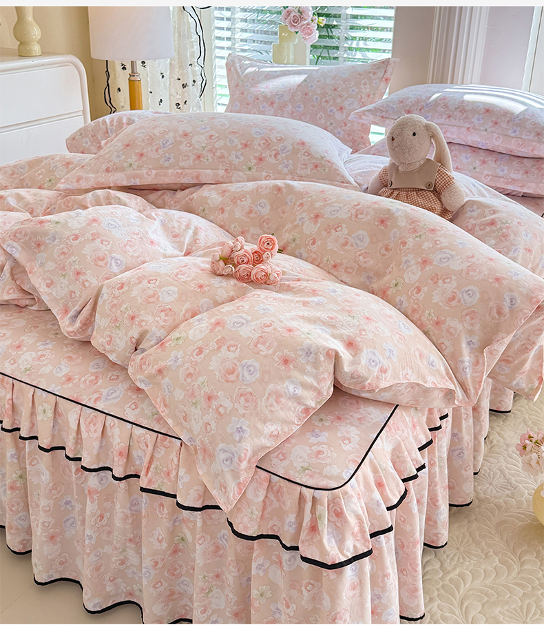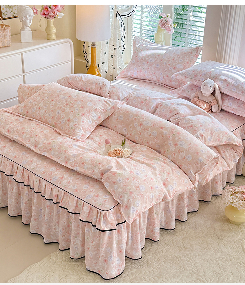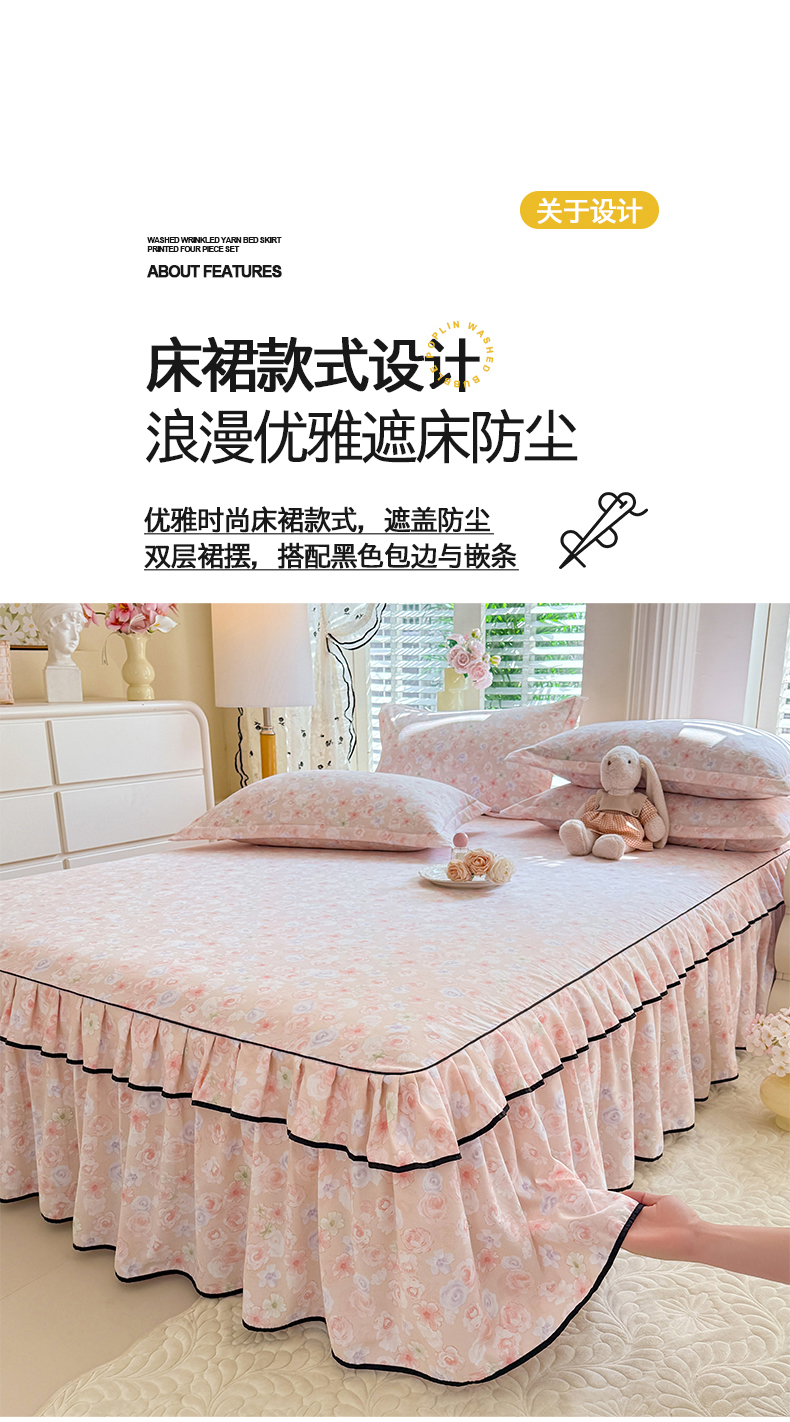 当前位置: 91家纺网 > 商品网购 > 床品套件 > 四件套 > 化纤普通四件套 > 优家居 2026新款A类水洗棉床裙四件套皱皱纱韩版公主风花边床罩直播爆款外贸定制 梦华录