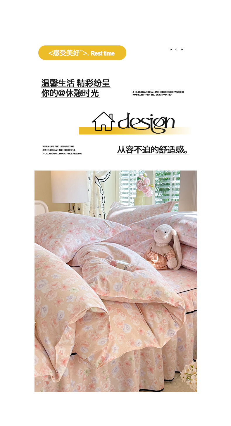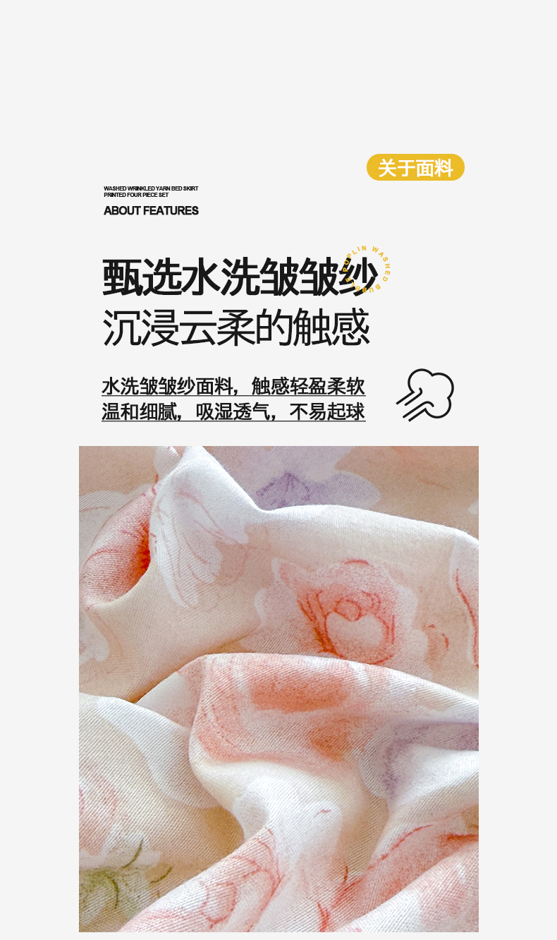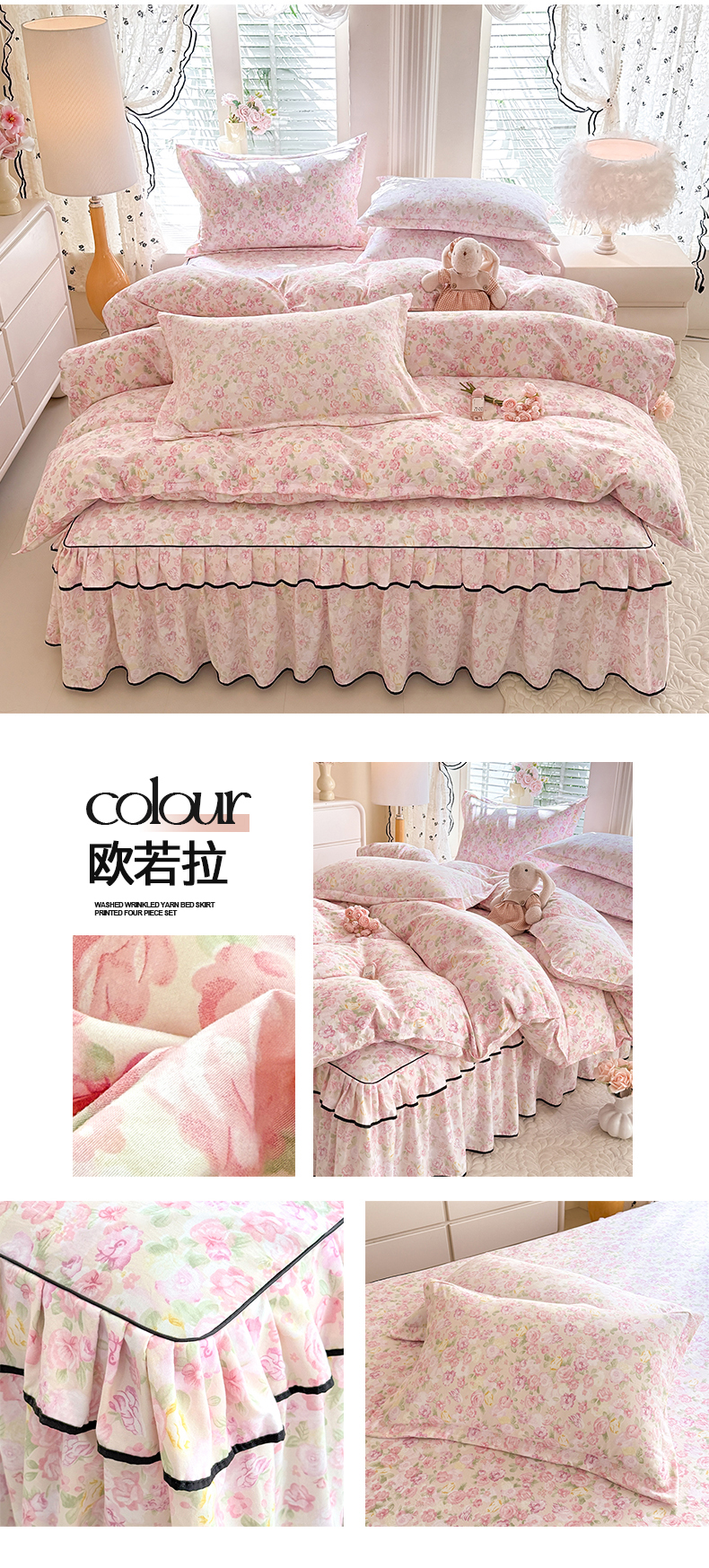 当前位置: 91家纺网 > 商品网购 > 床品套件 > 四件套 > 化纤普通四件套 > 优家居 2026新款A类水洗棉床裙四件套皱皱纱韩版公主风花边床罩直播爆款外贸定制 梦华录