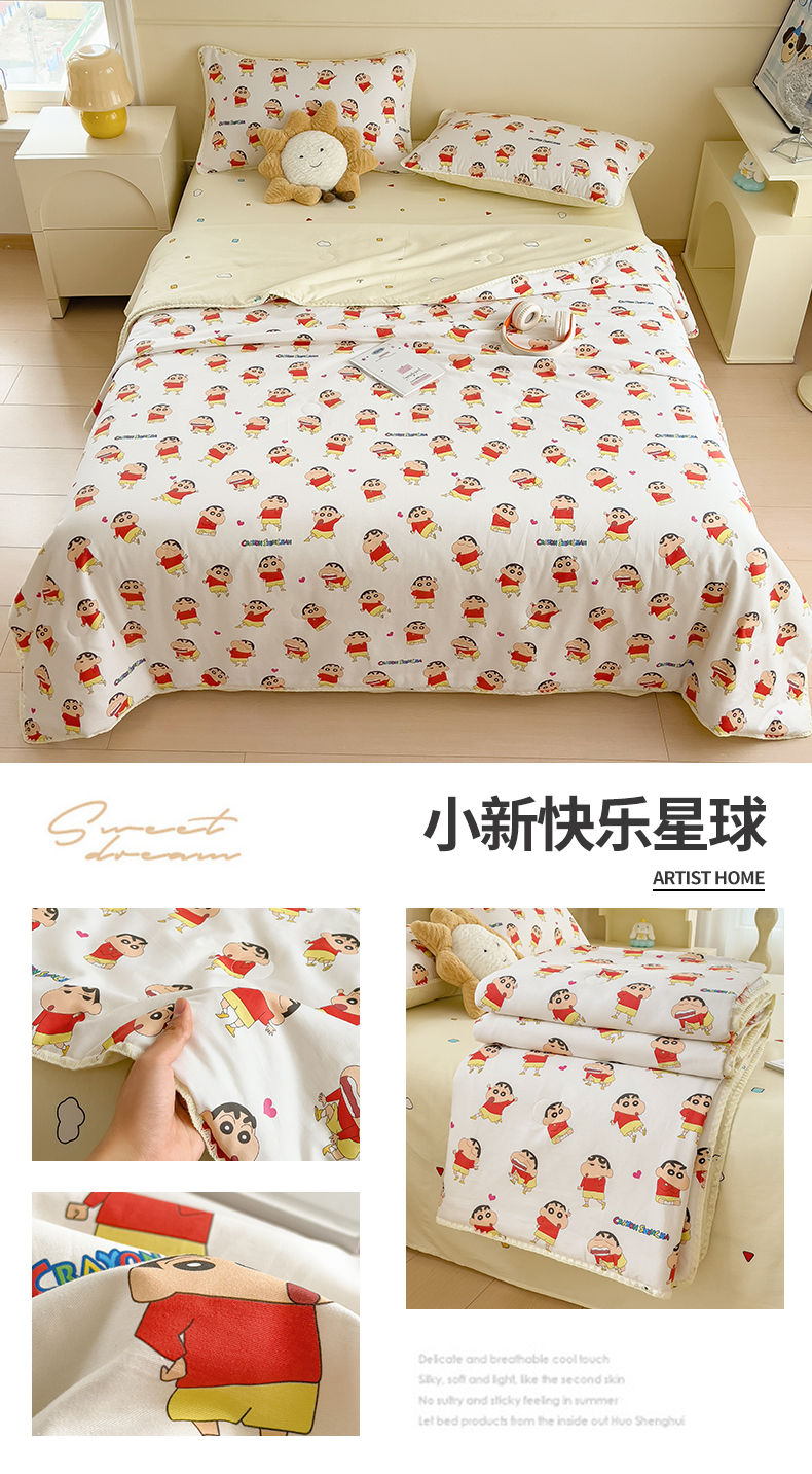 商品名称:兄弟坊 2026新款正版授权卡通全棉13370印花夏被夏凉被儿童被 夏被四件套 小新快乐星球