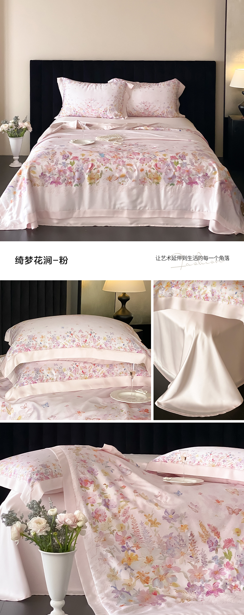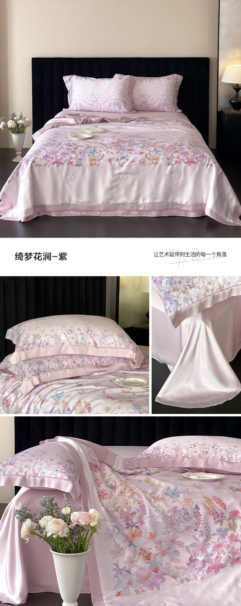 商品名称:(总)云栖家居 2026新款60天丝数码印花夏被四件套-绮梦花间