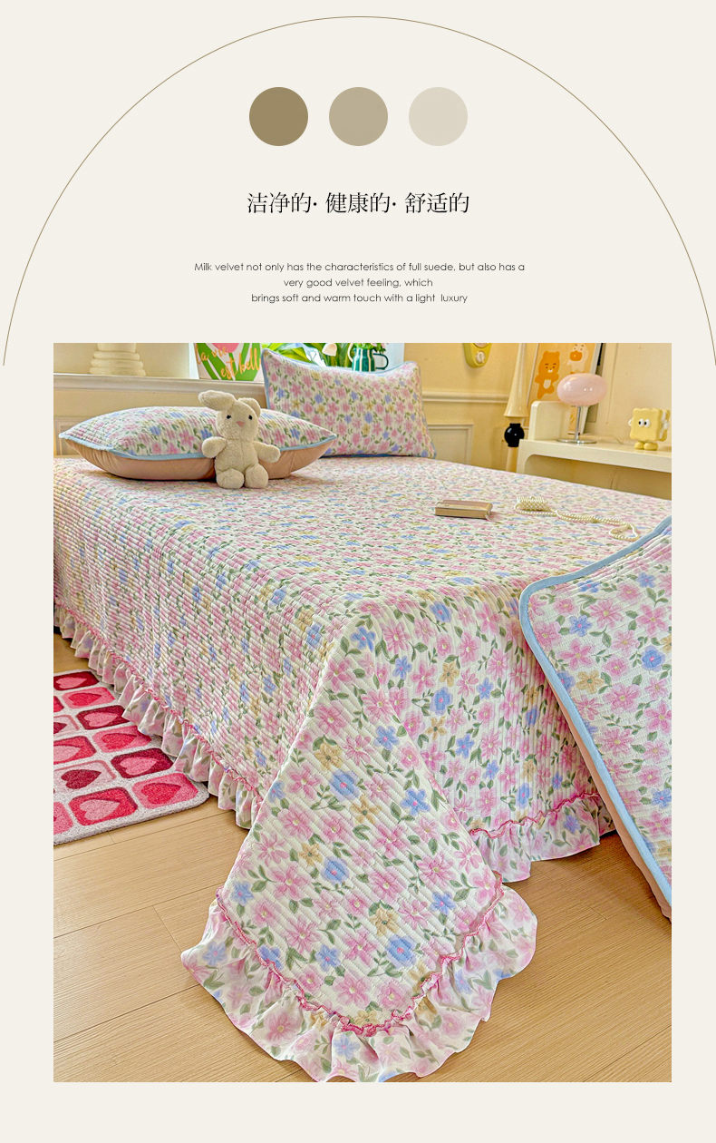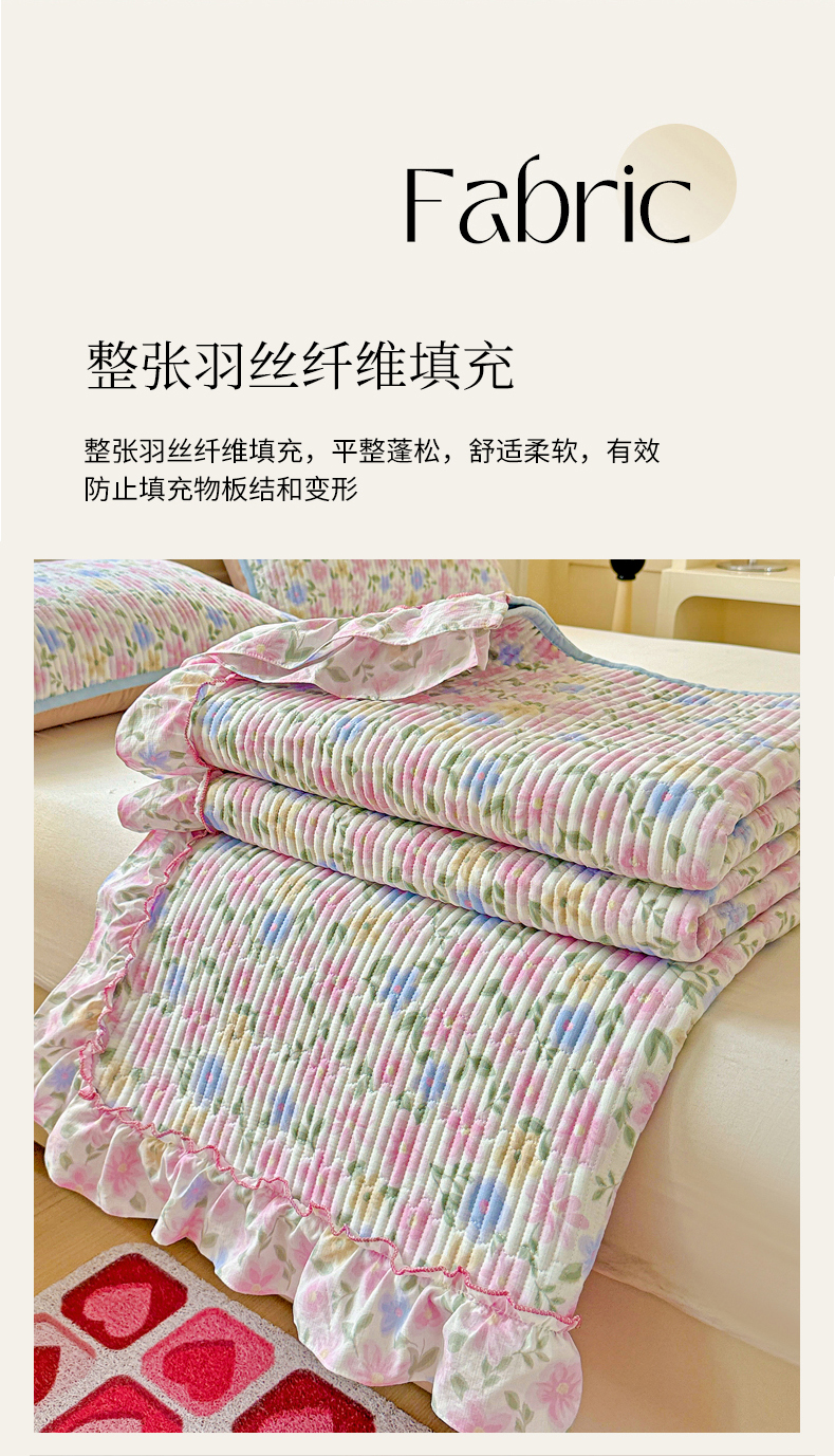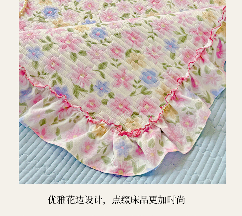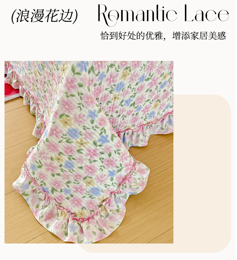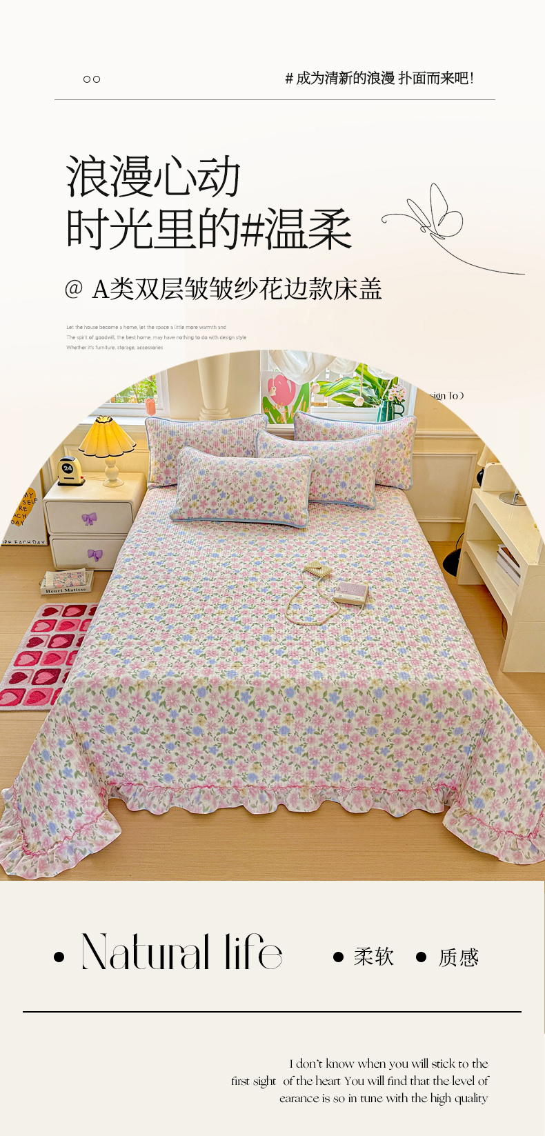当前位置: 91家纺网 > 商品网购 > 床上用品 > 床盖 > 恒尚居 2026新款云感皱皱纱床盖花边床单双层纱床盖三件套-四季款 花边款-蔷薇