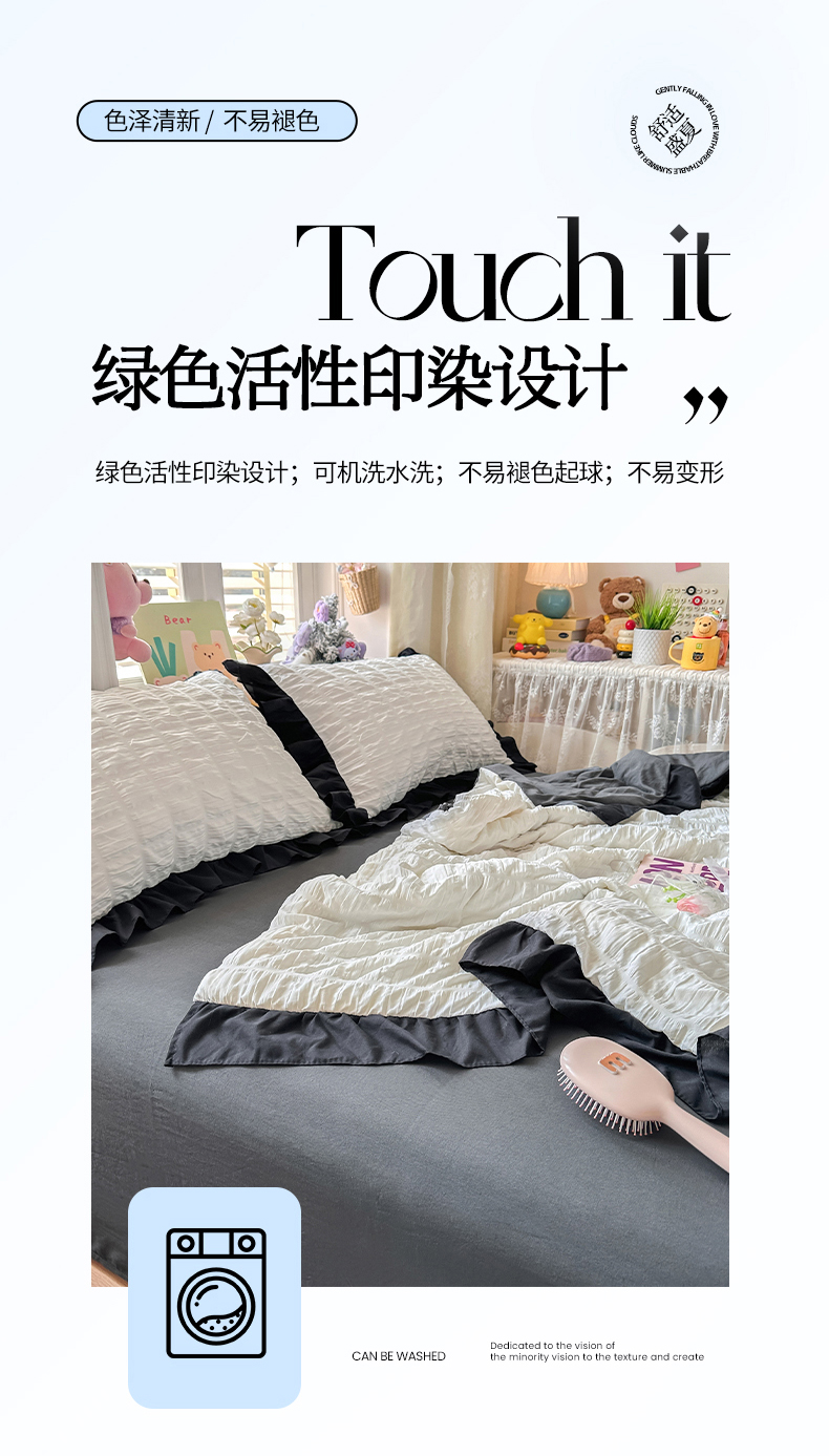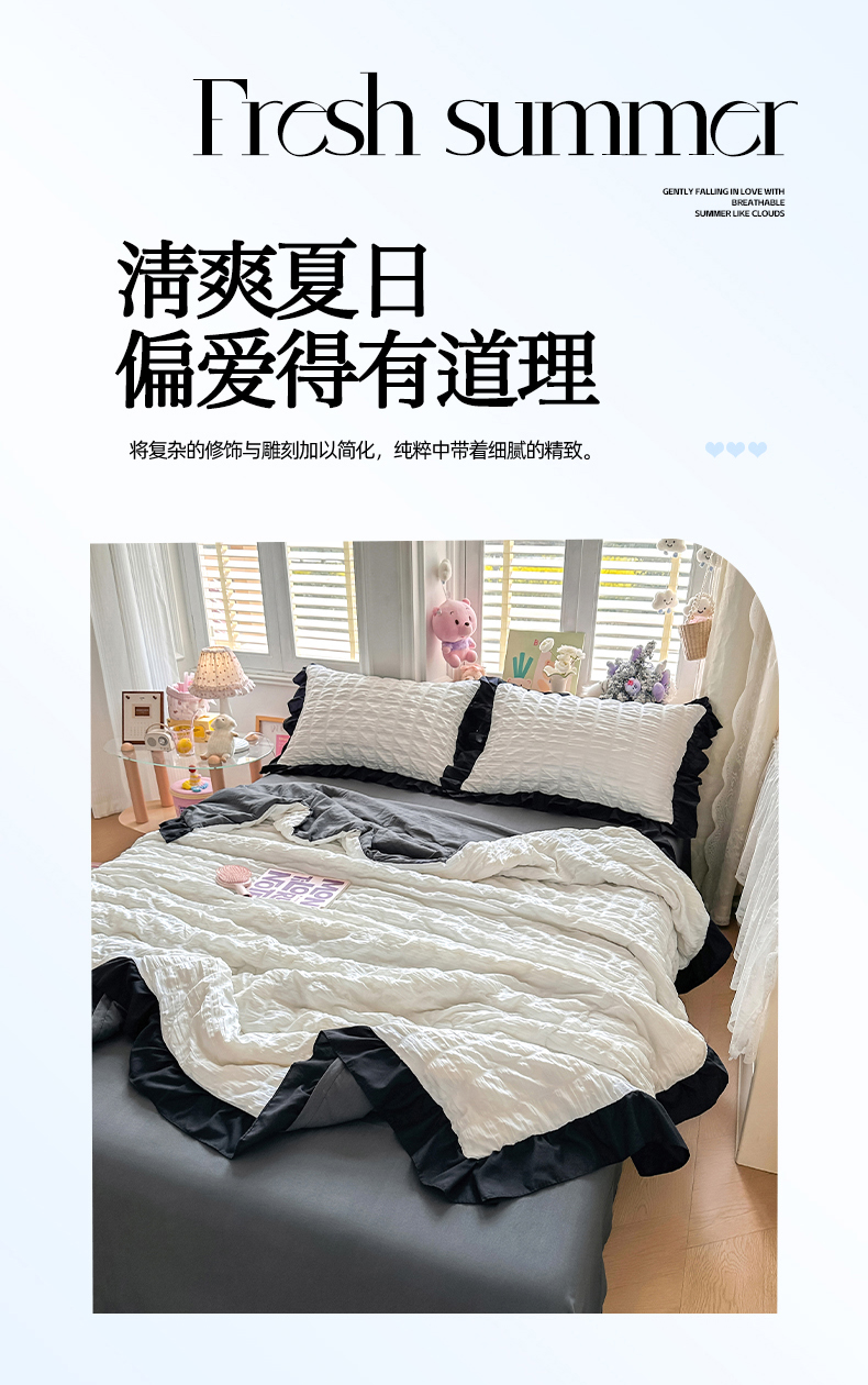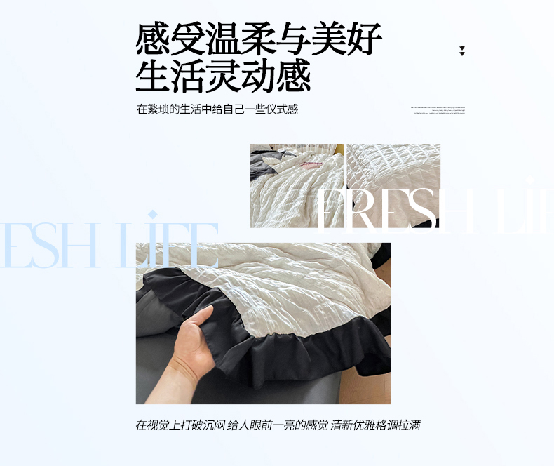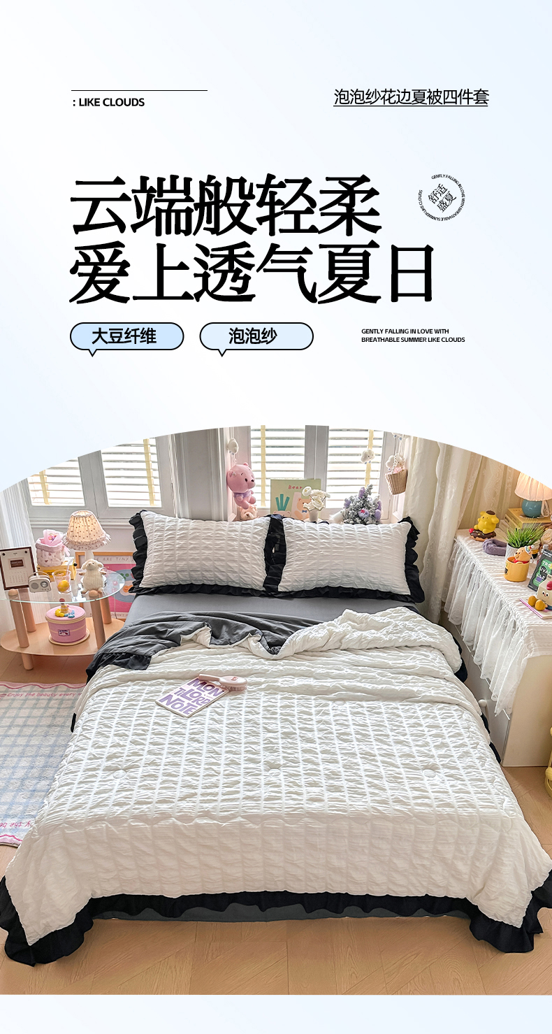 (总)优卡迪家纺馆 2026新款皱皱棉黑花边夏被四件套下载文件包含买家秀,雨蝶(花边款),紫苏(花边款),波点生活-粉(花边款),波点生活-绿(花边款),花园日记(花边款),泡沫之夏(花边款),午后甜梦(花边款),云影星斑-粉(花边款)
