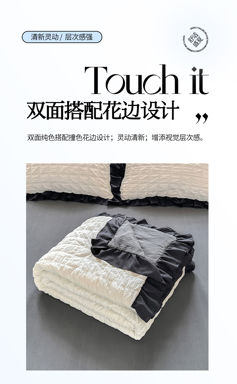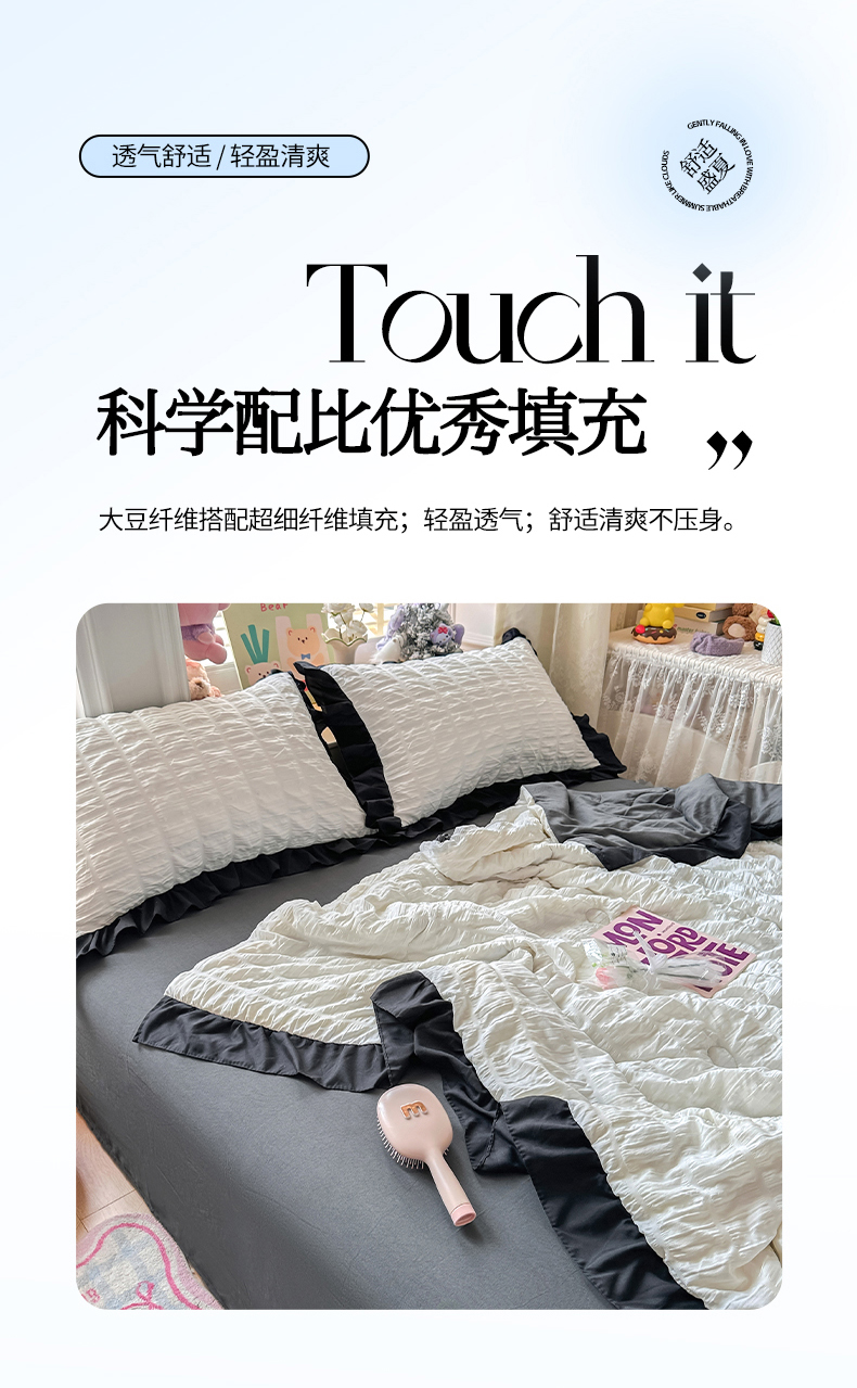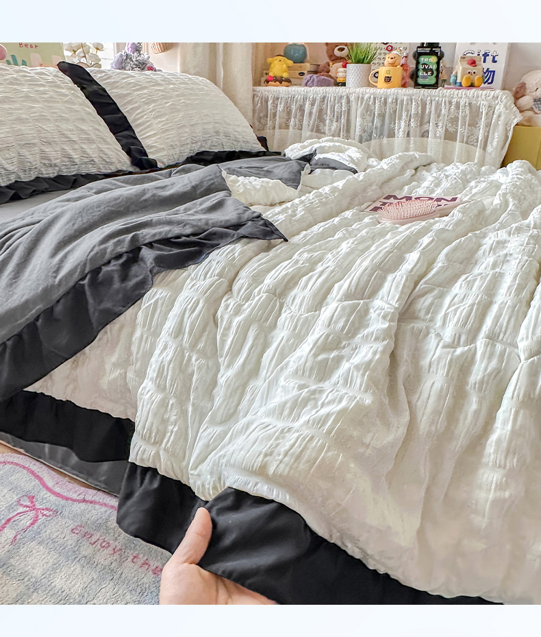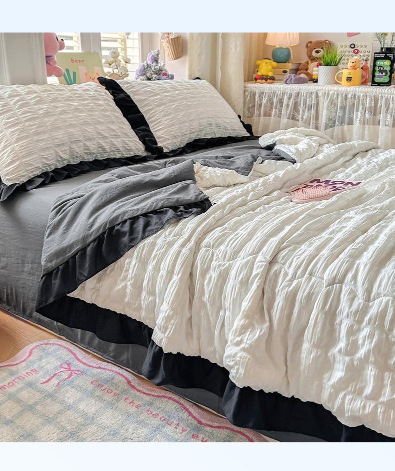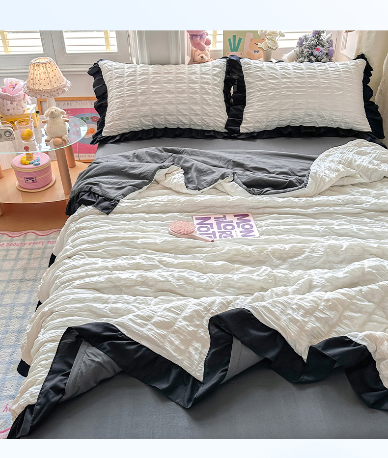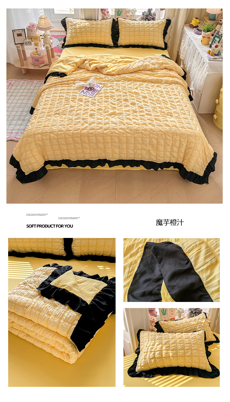 • 91家纺网 家纺一手货源 找家纺 优卡迪家纺馆 2026新款泡泡纱黑花边大豆夏被被子被芯下载文件包含买家秀 茉莉奶昔