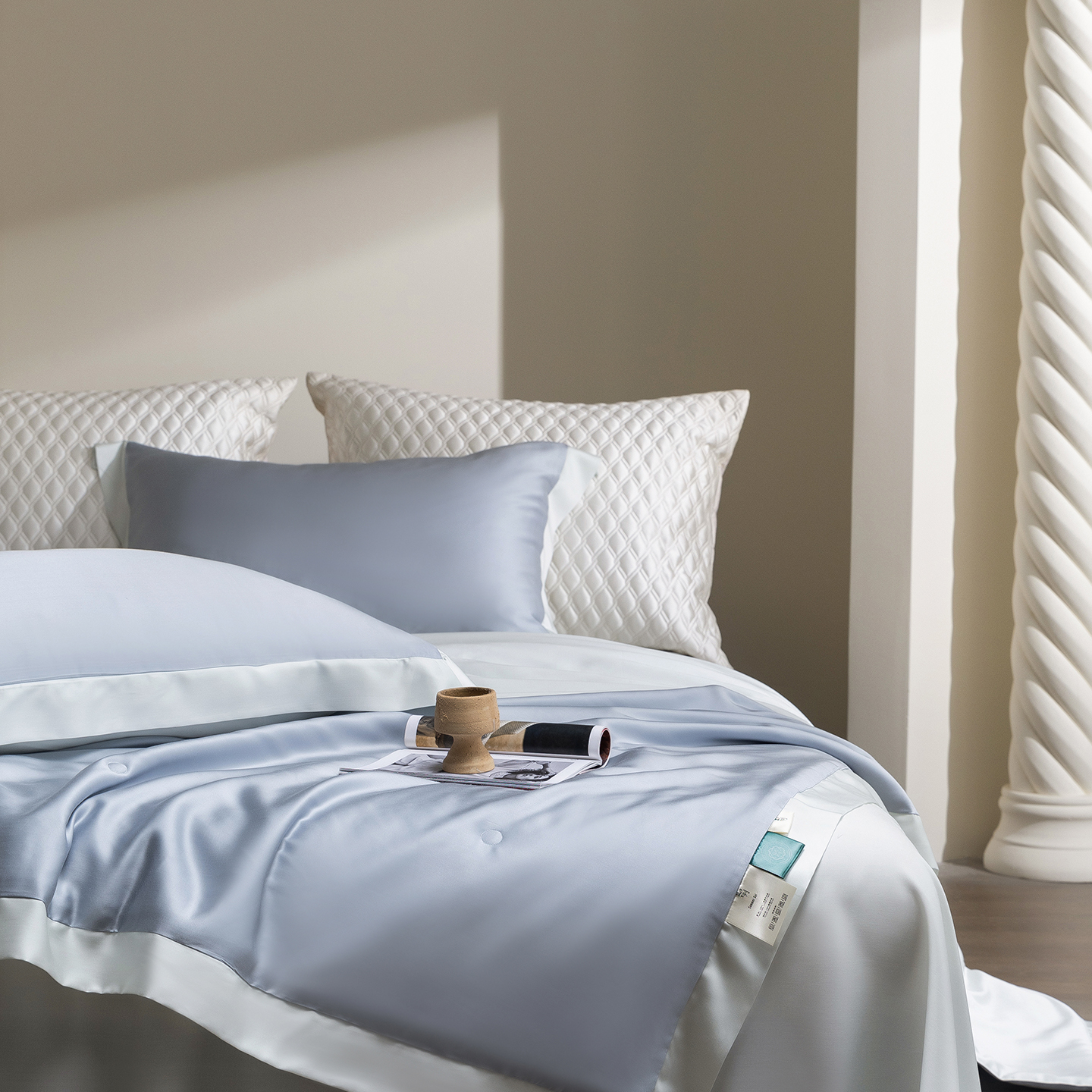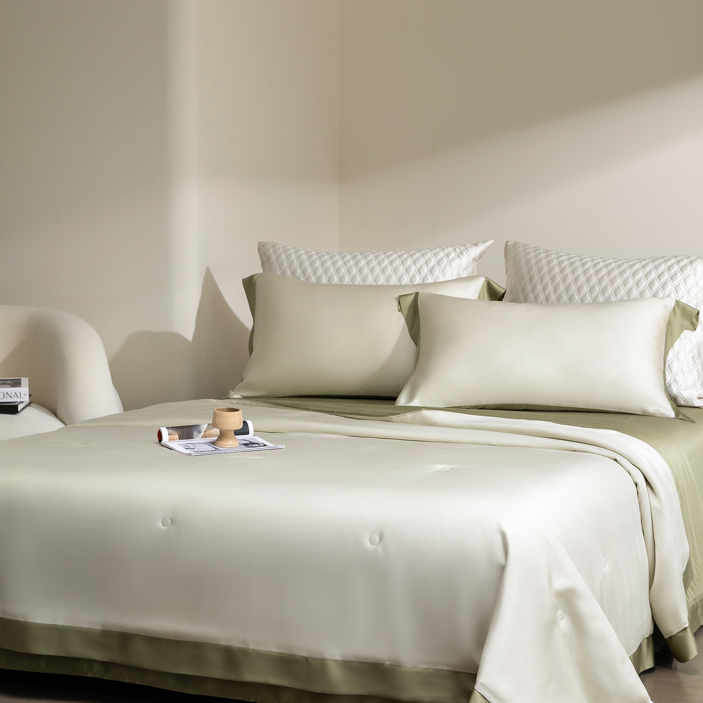 (总)佳汐蓝家纺 2026新款进口奥地利兰精天丝丝颜悦色-夏被四件套,瓷器绿,丁香紫,灵境兰,缦豆沙,水晶灰,杏云粉,杏云绿,云水绿