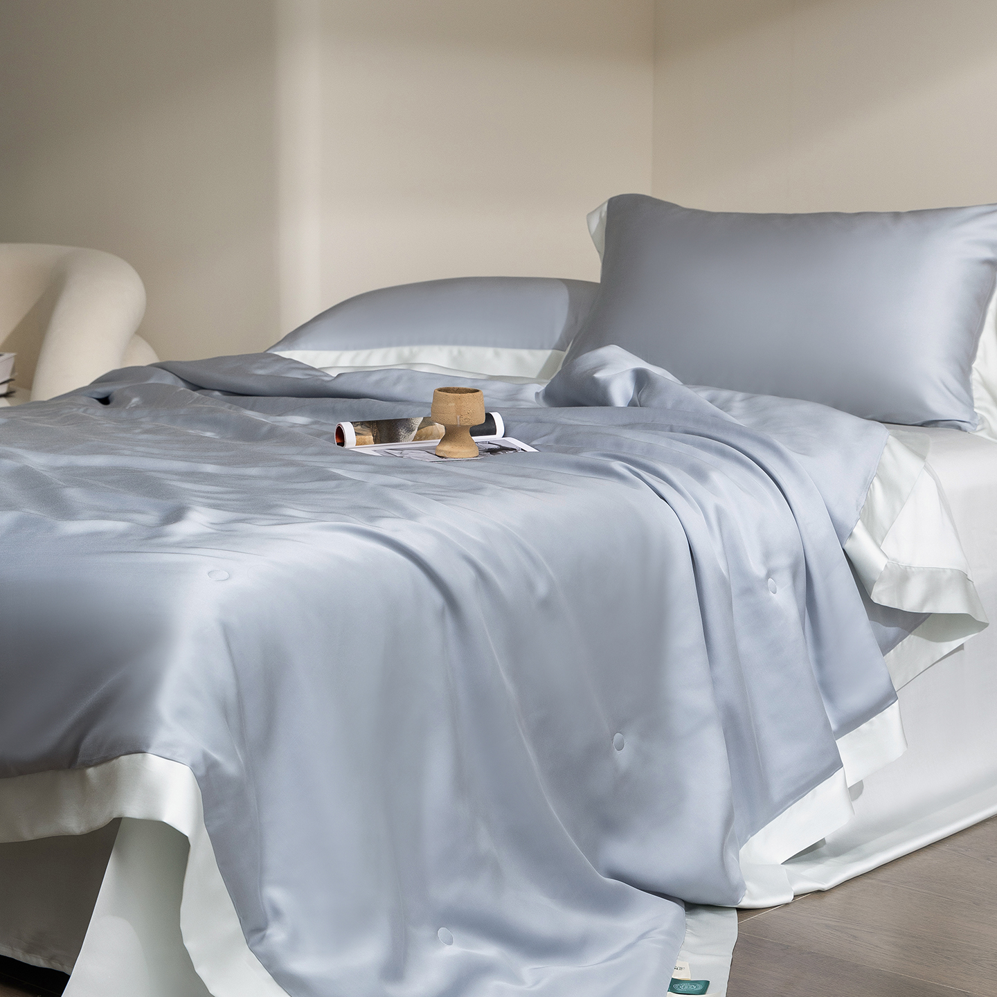 (总)佳汐蓝家纺 2026新款天丝棉麻提花可水洗有机蚕丝夏被,汉白玉,可可棕,青提绿,云烟灰