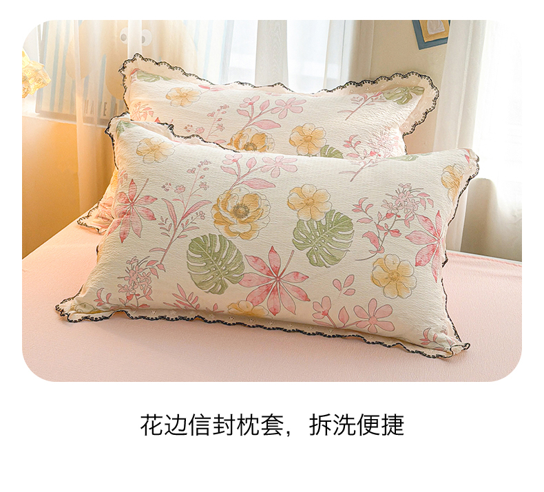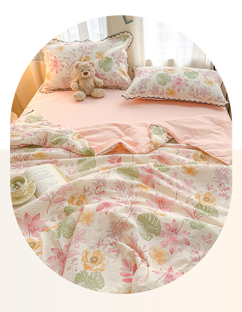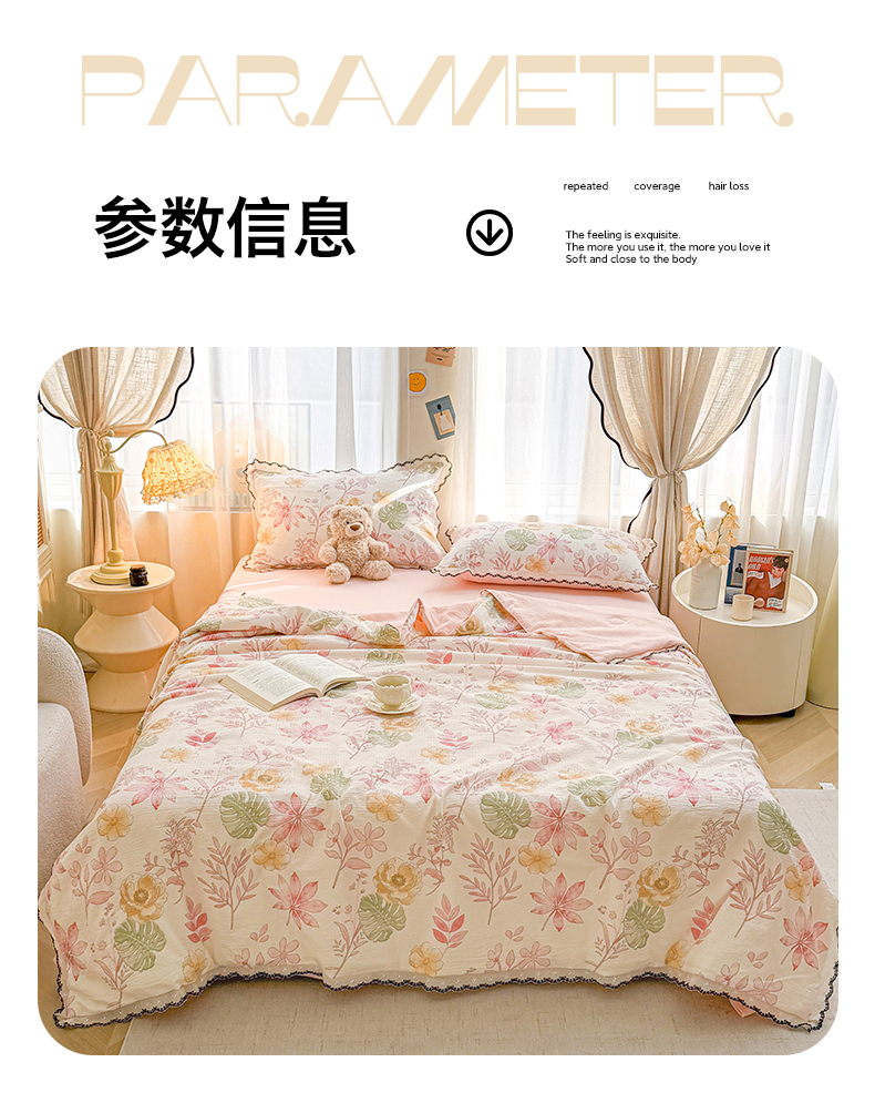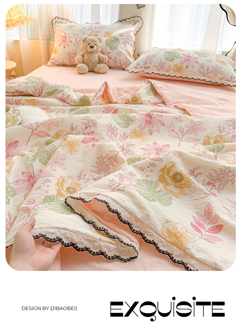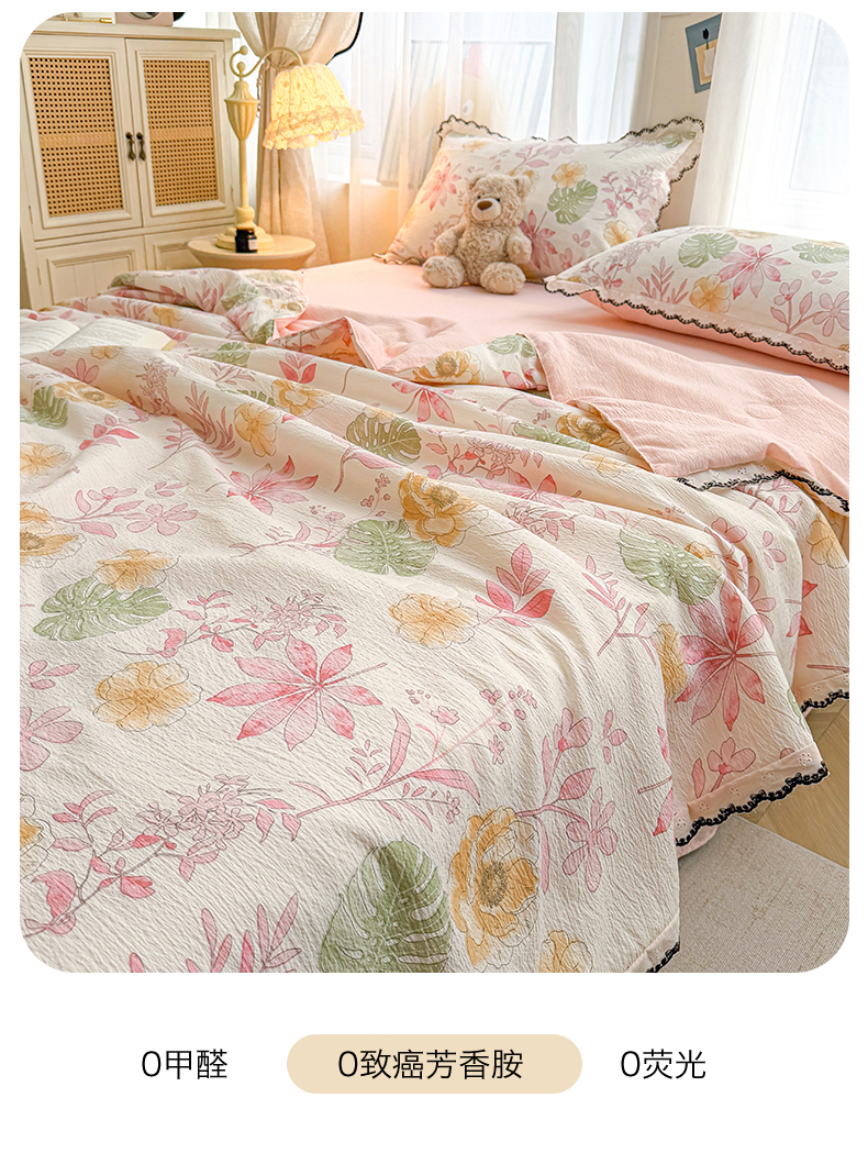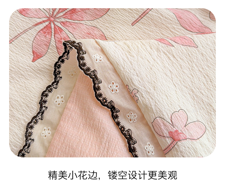 • 91家纺网 家纺一手货源 找家纺 招财星家纺 2026新款A类全棉花边云感双层纱大豆纤维夏被四件套夏被夏凉被空调被(带质检报告买家秀) 花边款-缤纷花朵