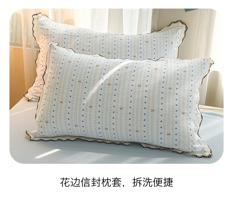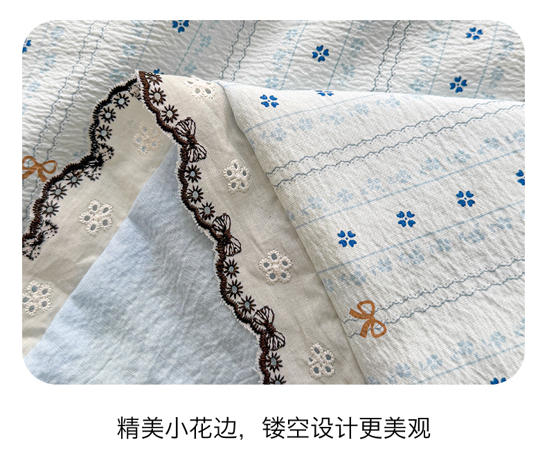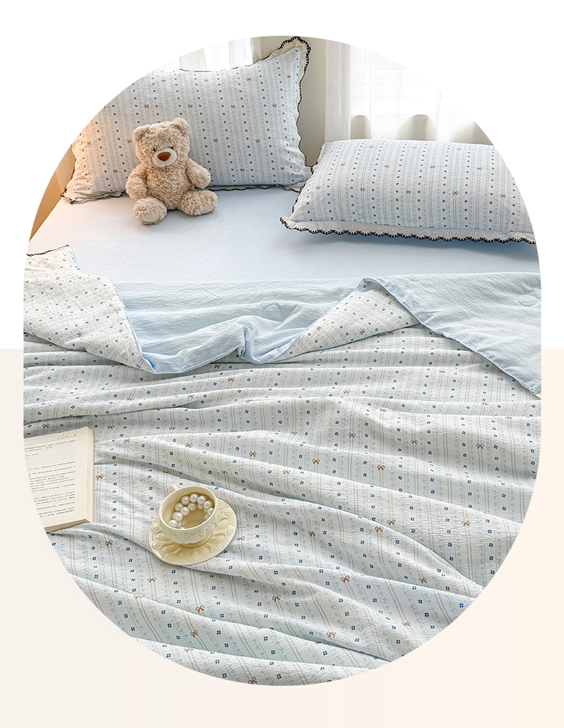 当前位置: 91家纺网 > 商品网购 > 被子 > 夏被 > 招财星家纺 2026新款A类全棉花边云感双层纱大豆纤维夏被四件套夏被夏凉被空调被(带质检报告买家秀) 花边款-幸运结-蓝