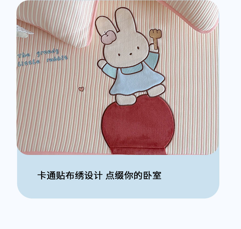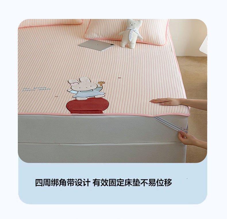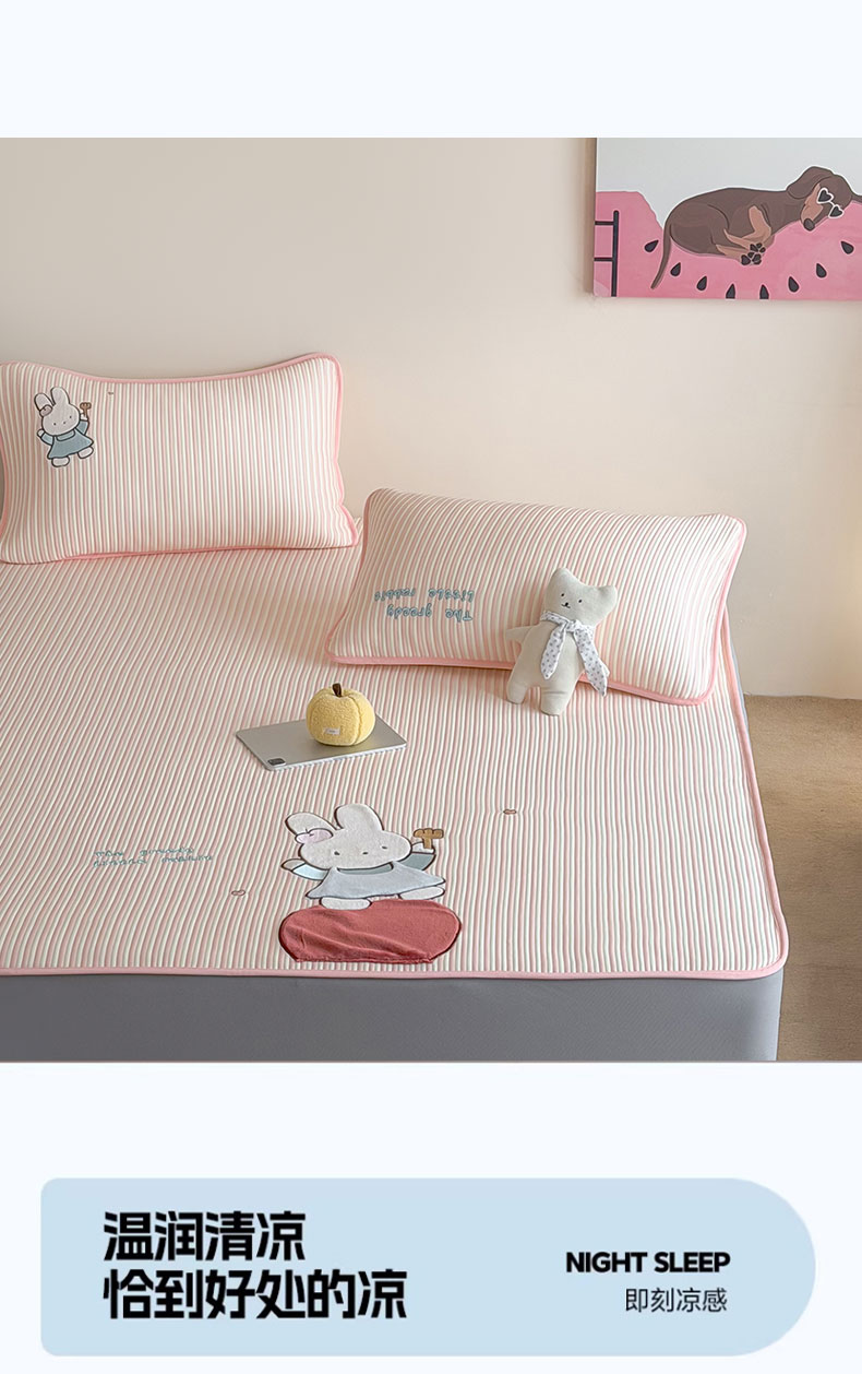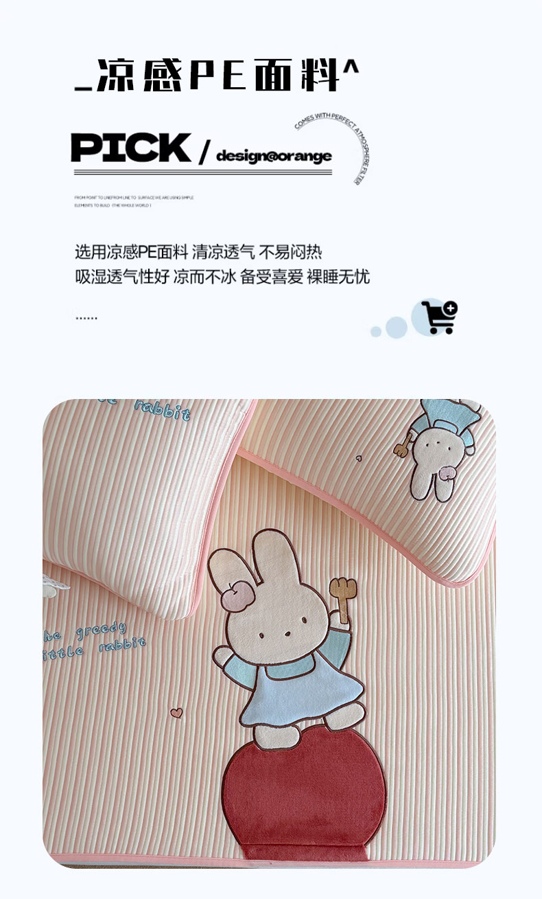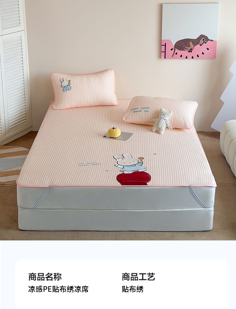 • 91家纺网 家纺一手货源 找家纺 桃子家居 2026新款A类PE凉感卡通贴布绣高端工艺空调软席床席床笠凉席三件套 PE贴布绣-番茄仙女兔