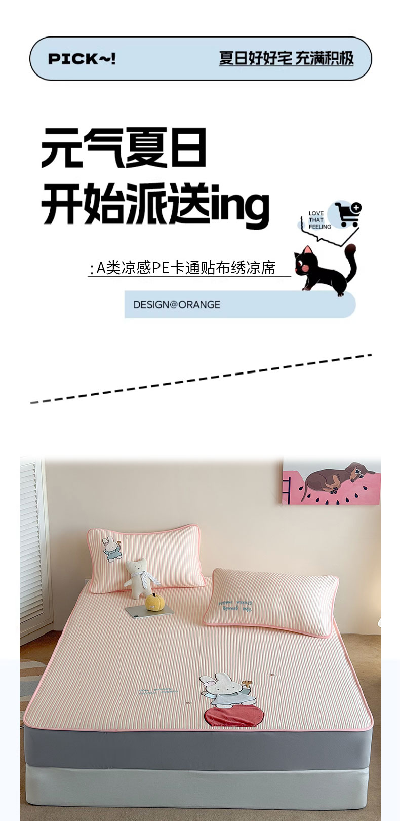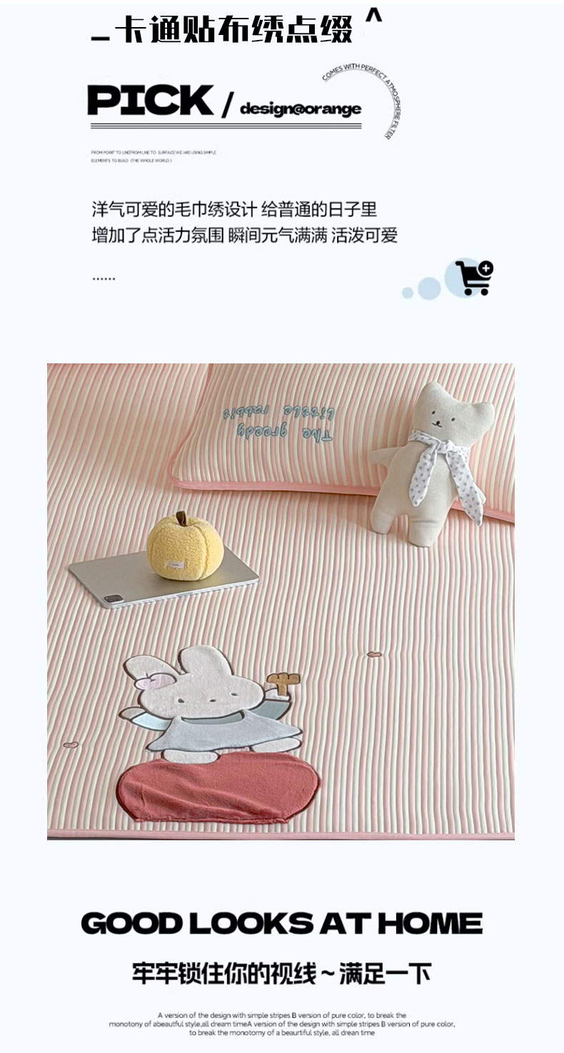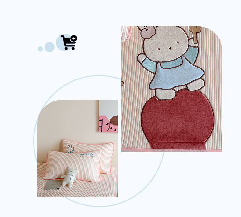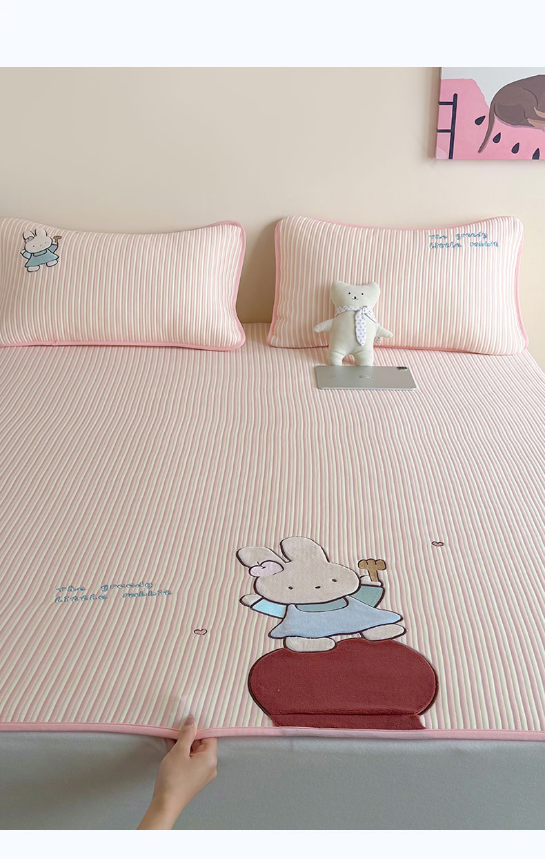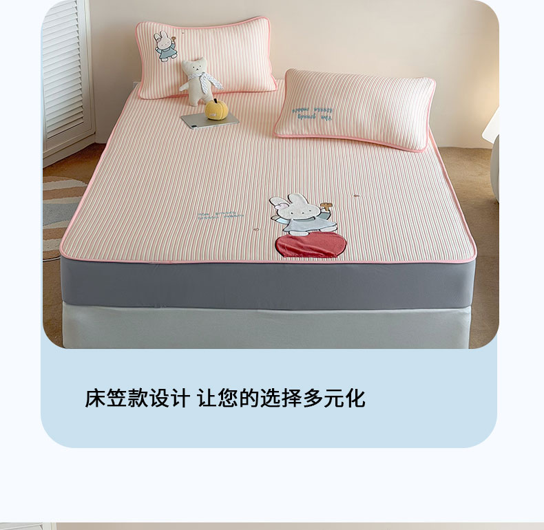 • 91家纺网 家纺一手货源 找家纺 桃子家居 2026新款A类PE凉感卡通贴布绣高端工艺空调软席床席床笠凉席三件套 PE贴布绣-番茄仙女兔