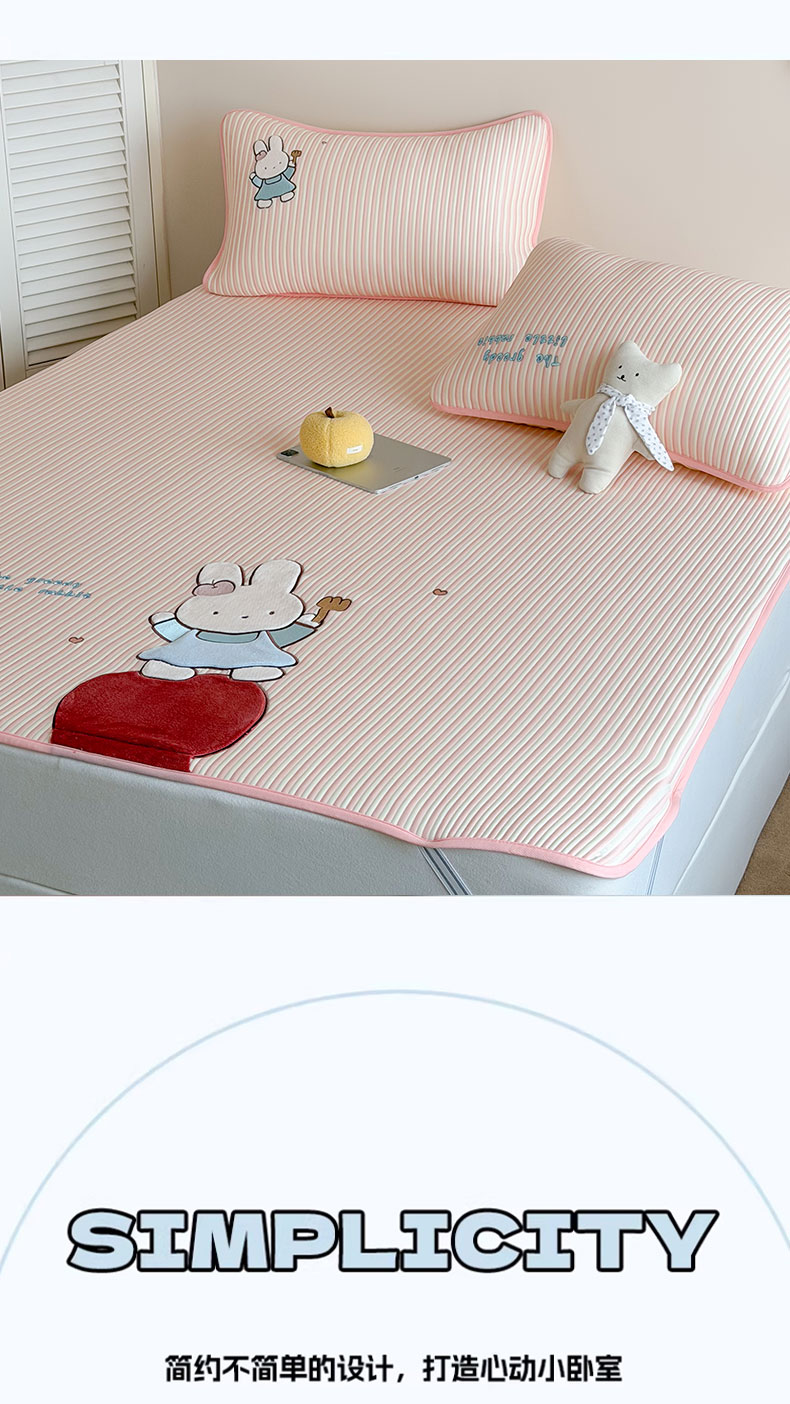 当前位置: 91家纺网 > 商品网购 > 床上用品 > 凉席 > 桃子家居 2026新款A类PE凉感卡通贴布绣高端工艺空调软席床席床笠凉席三件套 PE贴布绣-番茄仙女兔