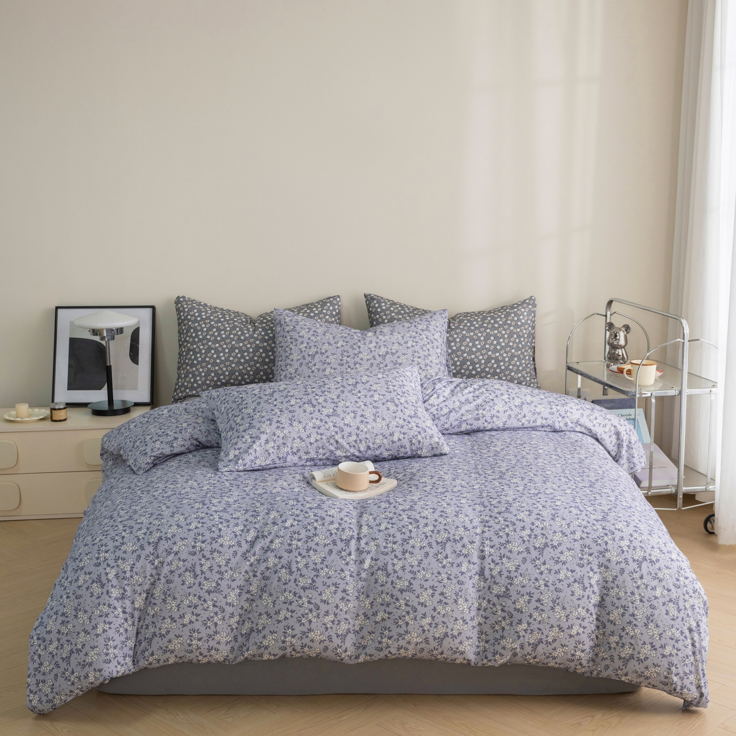 (总)梦可莱家居 2026春夏新款全棉纯棉针织棉印花小清新可爱Ins风四件套,波点蓝花,抱抱熊,比熊,波点红花,丁香花,格子蝴蝶,格子樱桃,海棠花,红玫瑰,咖格,腊梅,蓝花藤,露丝,绿意,秋天咖,杉叶,太阳花,条纹狗,兔小姐,知画,紫薇