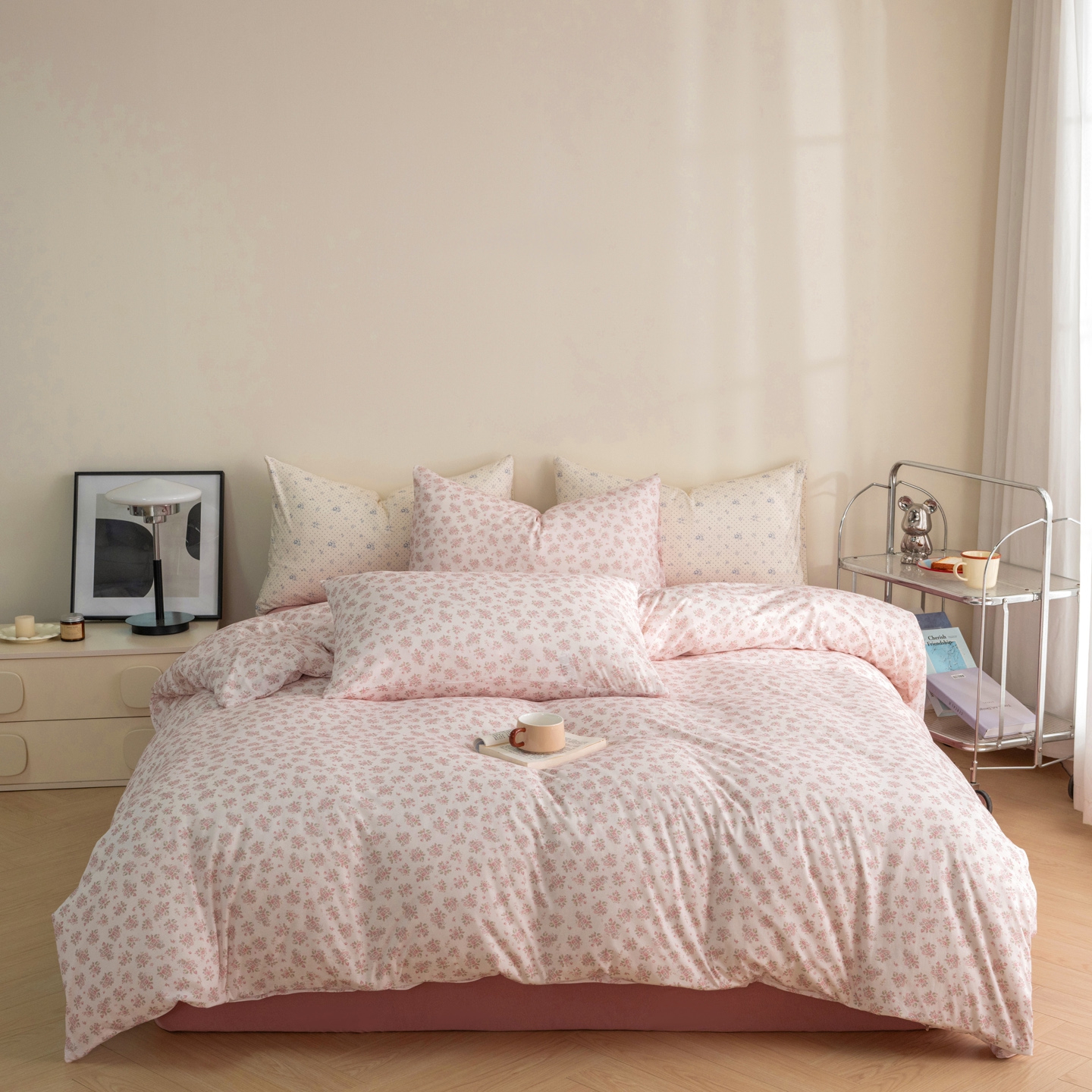 (总)梦可莱家居 2026春夏新款全棉纯棉针织棉印花小清新可爱Ins风四件套,波点蓝花,抱抱熊,比熊,波点红花,丁香花,格子蝴蝶,格子樱桃,海棠花,红玫瑰,咖格,腊梅,蓝花藤,露丝,绿意,秋天咖,杉叶,太阳花,条纹狗,兔小姐,知画,紫薇