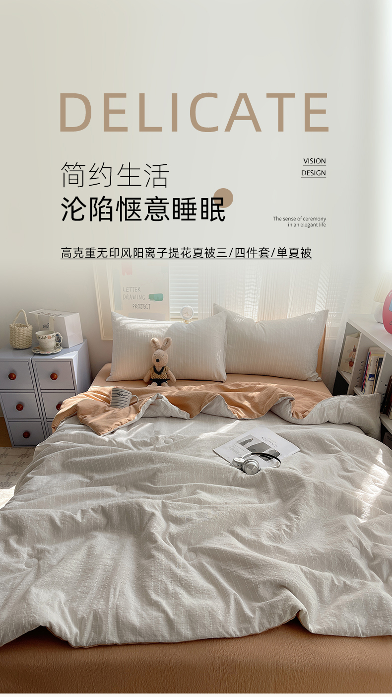 商品名称:(总)栩裕纺织 2026新款高克重无印风阳离子提花单夏被-夏被三件套四件套