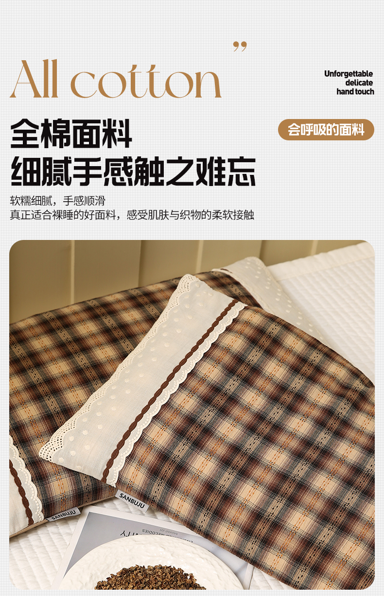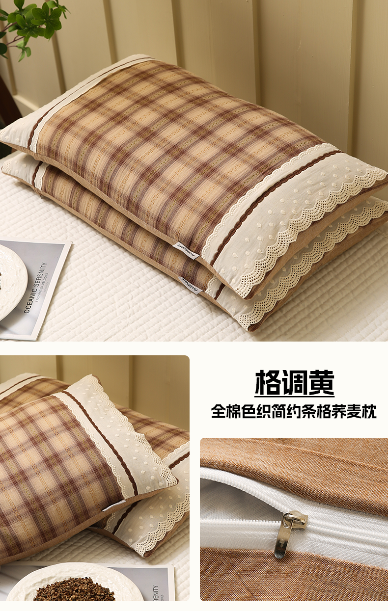 商品名称:梦叶草 2026新款全棉色织简约风条格荞麦枕芯 全棉色织简约条格荞麦枕-格调深咖
