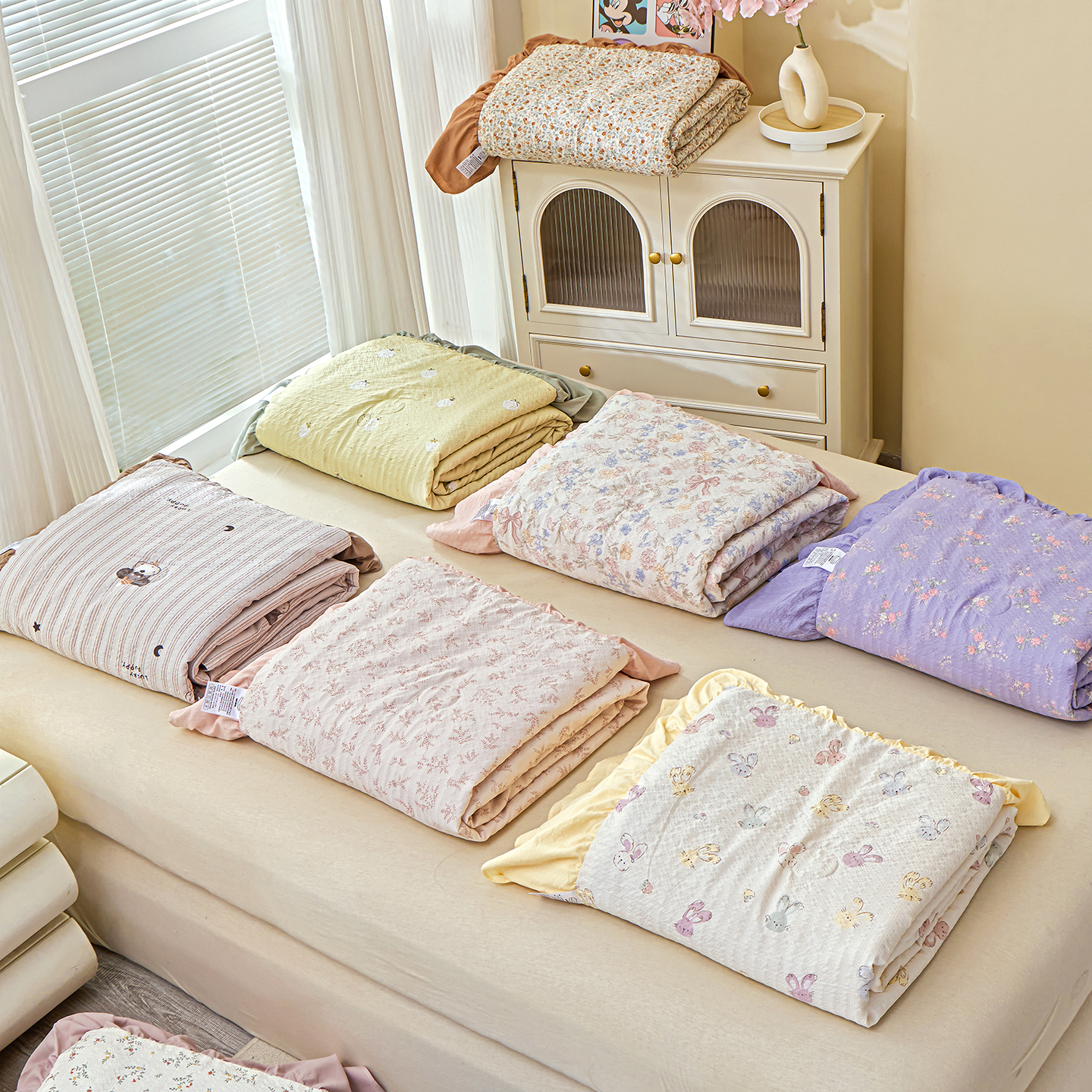 (总)人人爱家纺 2026新款泡芙纱欧式夏被夏凉被空调被四件套,蝴蝶梦,花藤小兔,咖啡狗,浪漫樱桃,抹茶梅梅,木马甜心,泡芙云朵,杉条叶,诗意柔,水云间,线条画心,长耳兔,紫色花语