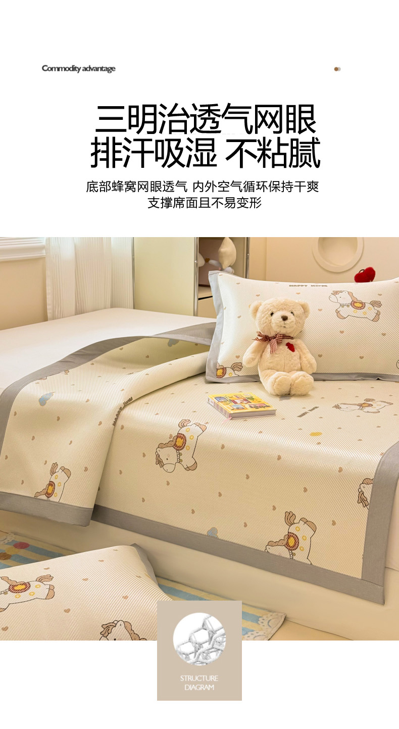 慕尚家纺 2026新款清新凉感冰藤席平铺款 马踏祥光