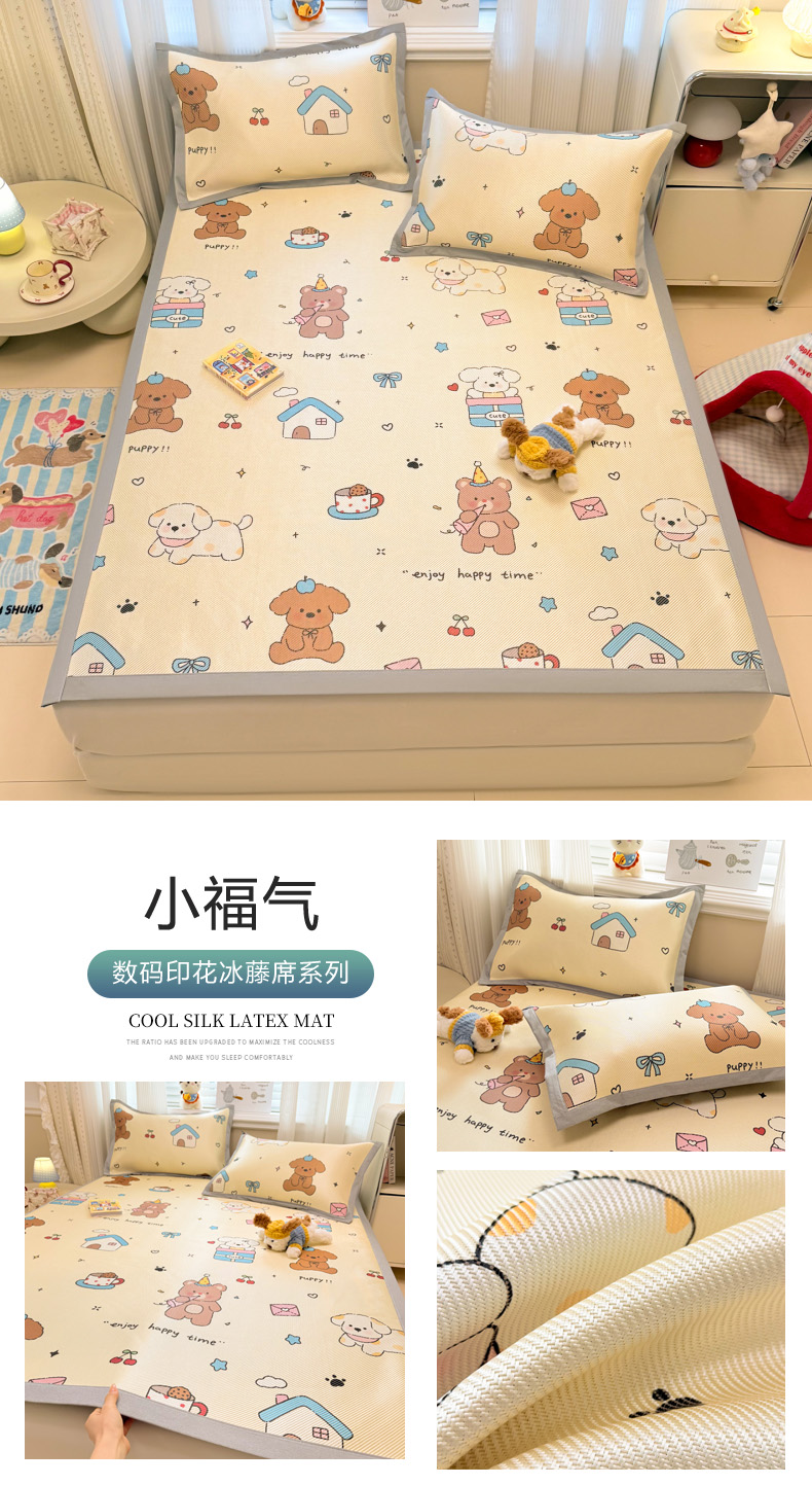 (总)慕尚家纺 2026新款清新凉感冰藤席床笠款,小福气,春日小兔,福禄小狗,蝴蝶结,活力小猫,开心约克,马踏祥光,梦幻紫花,魔法小熊,情人草,碎冰蓝,天使星仔,顽皮兔,小猫耶,小毛球,星星宝宝,星星熊,紫气东来
