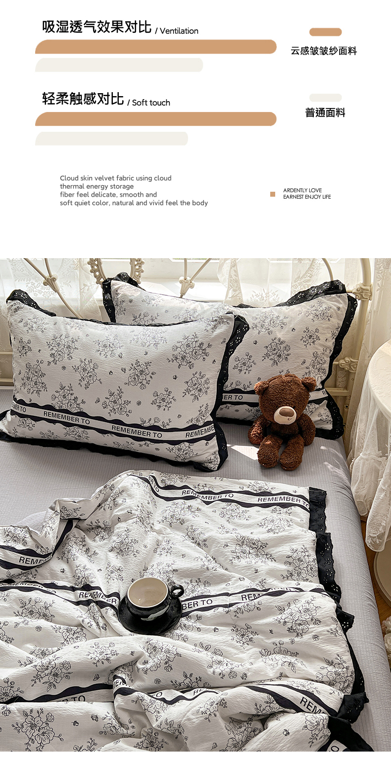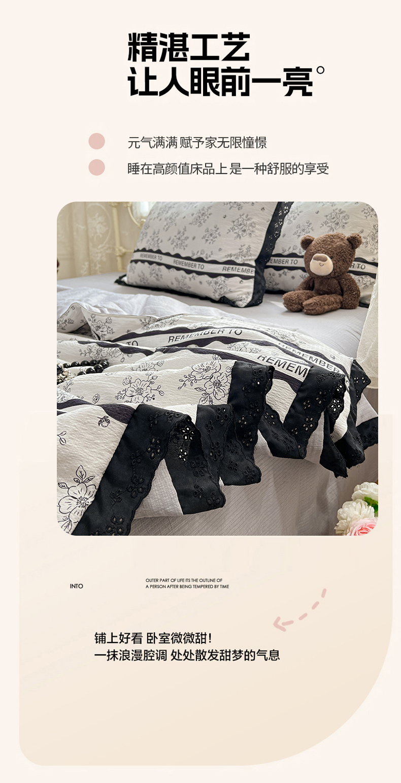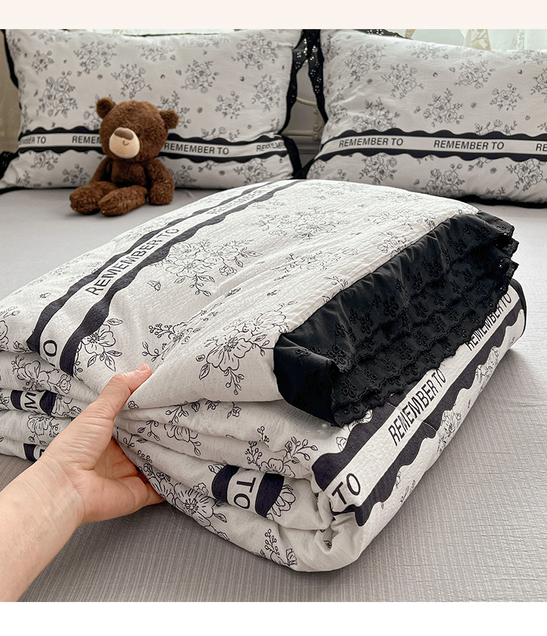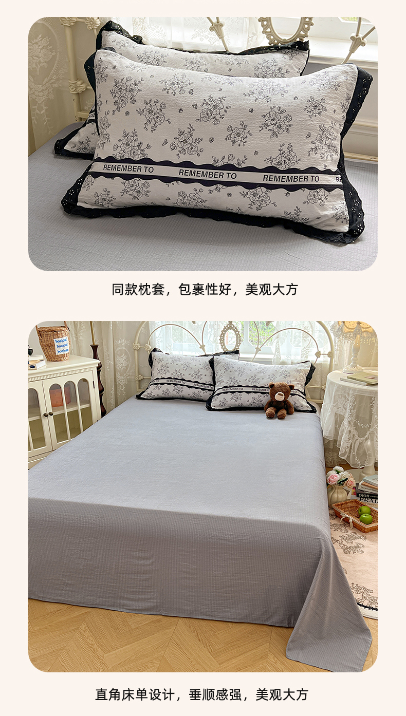 商品名称:优佳优品 2026新款云感皱皱纱全棉花边款夏被四件套 清墨