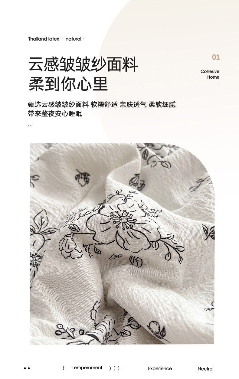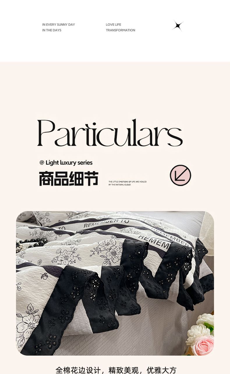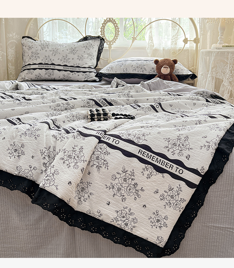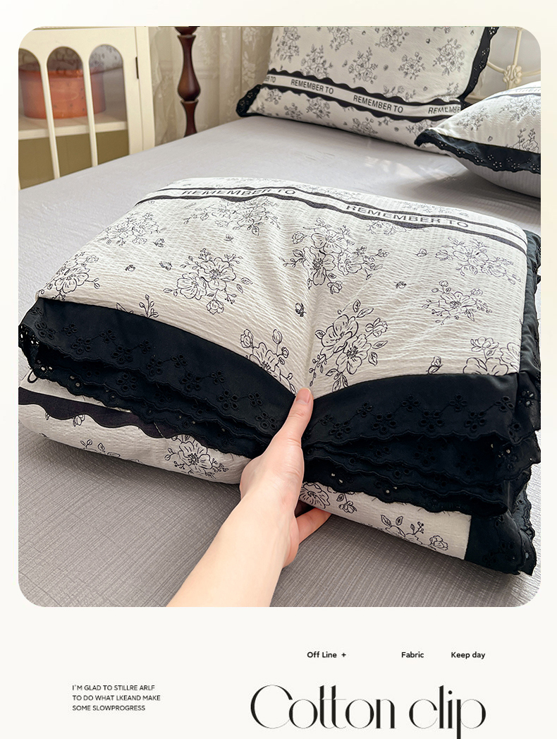 商品名称:优佳优品 2026新款云感皱皱纱全棉花边款夏被四件套 清墨