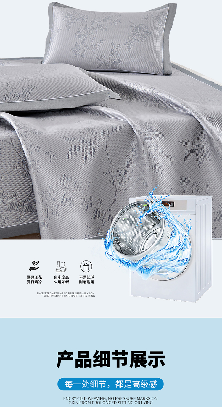 • 91家纺网 家纺一手货源 找家纺 (总)小牛席业 2026春夏新款双PE高凉感-薄荷清凉冰丝席席子凉席-床笠款,灰色,粉色,蓝色,香槟