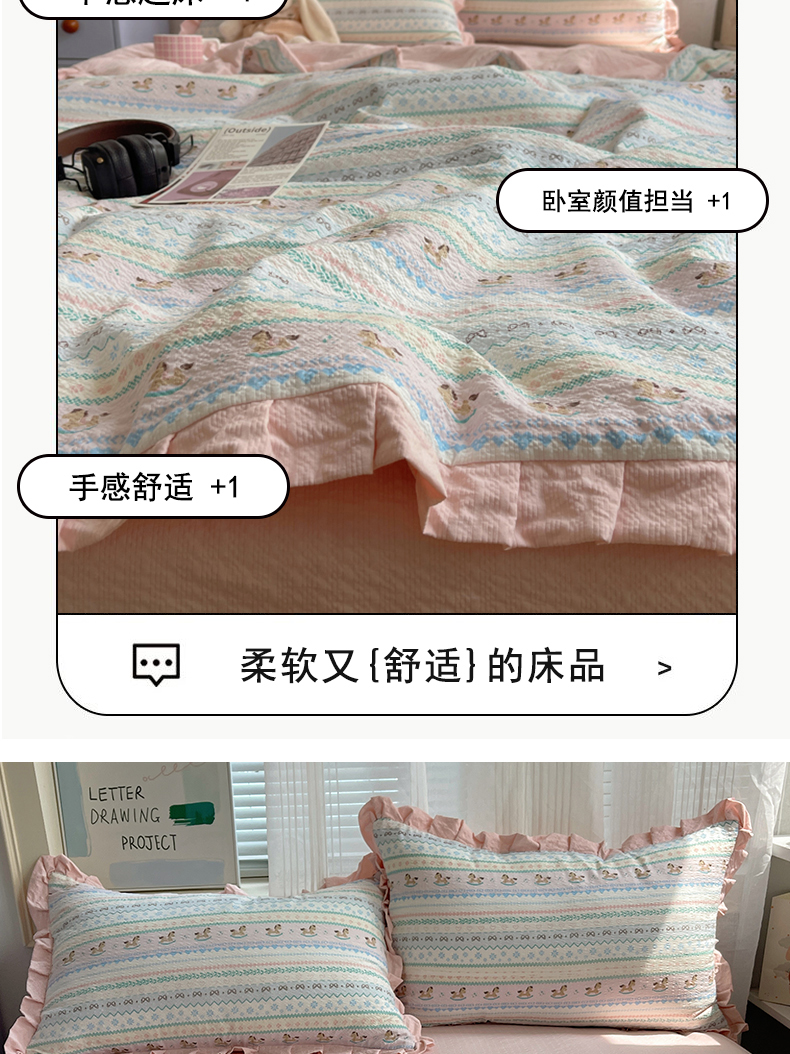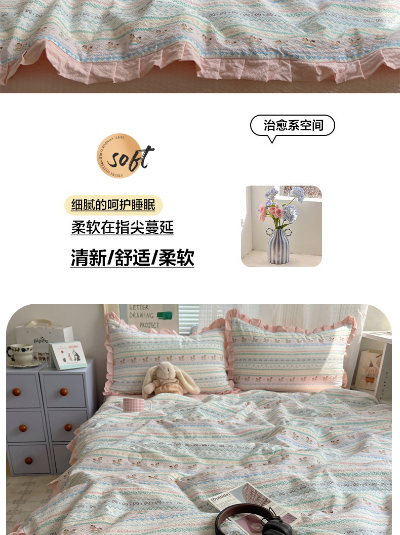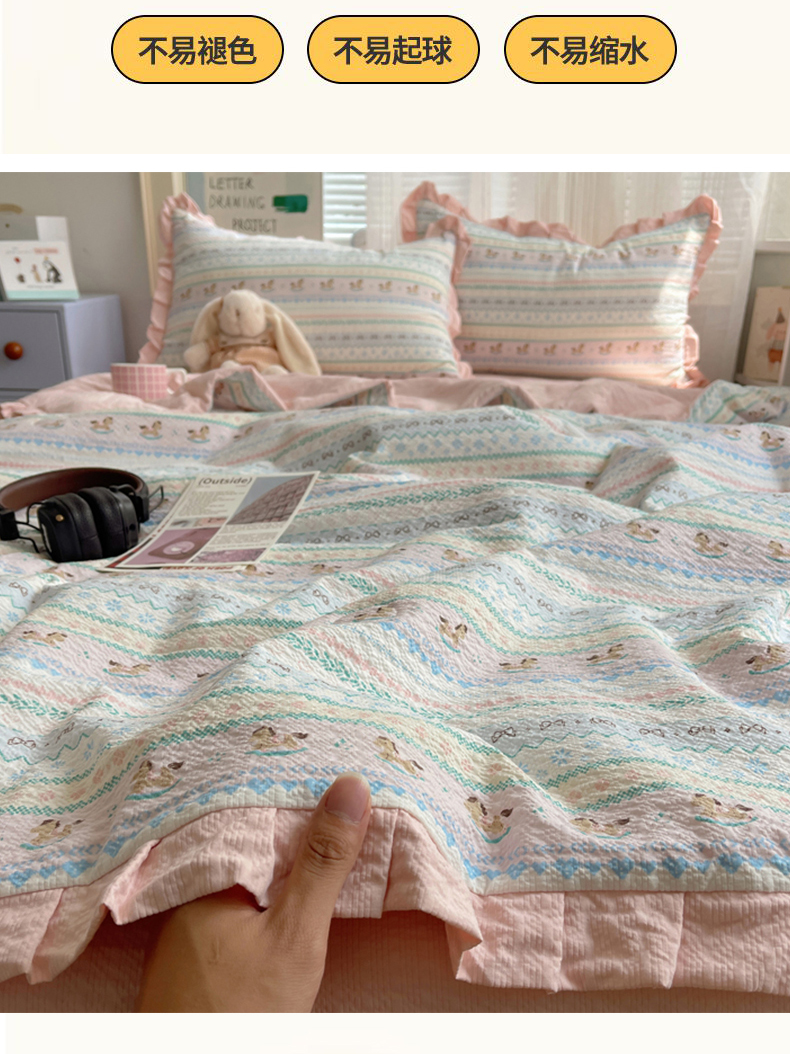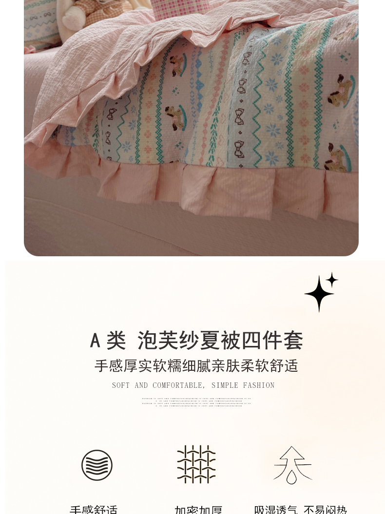 迪梦姿家纺 2026新款泡芙纱花边款夏被四件套 甜心木马卷