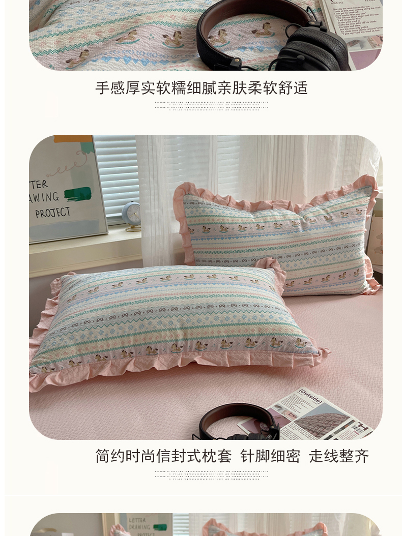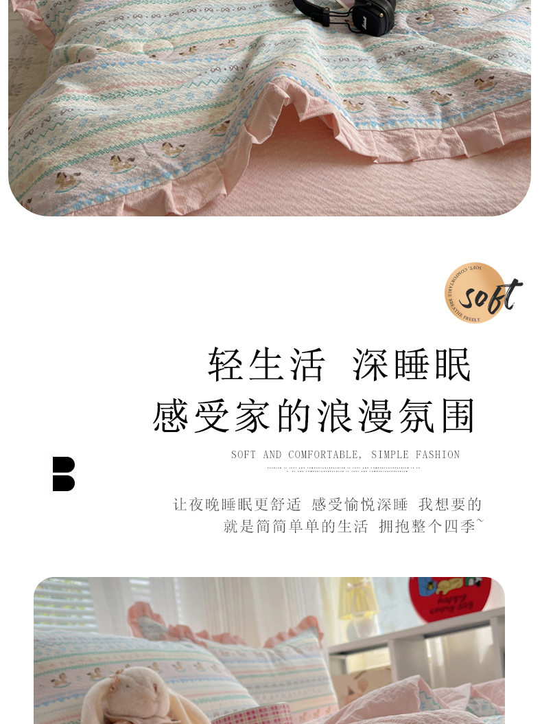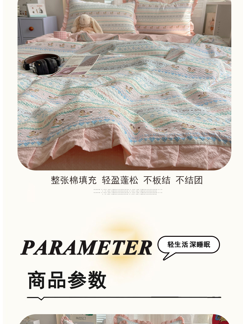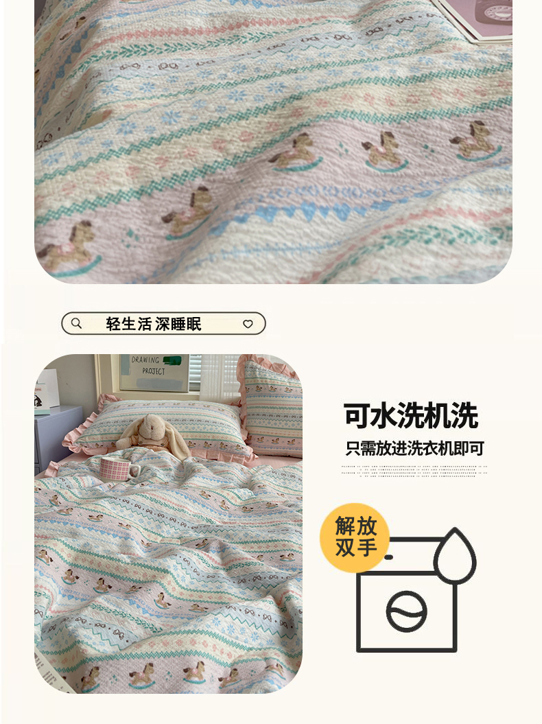 迪梦姿家纺 2026新款泡芙纱花边款夏被四件套 甜心木马卷