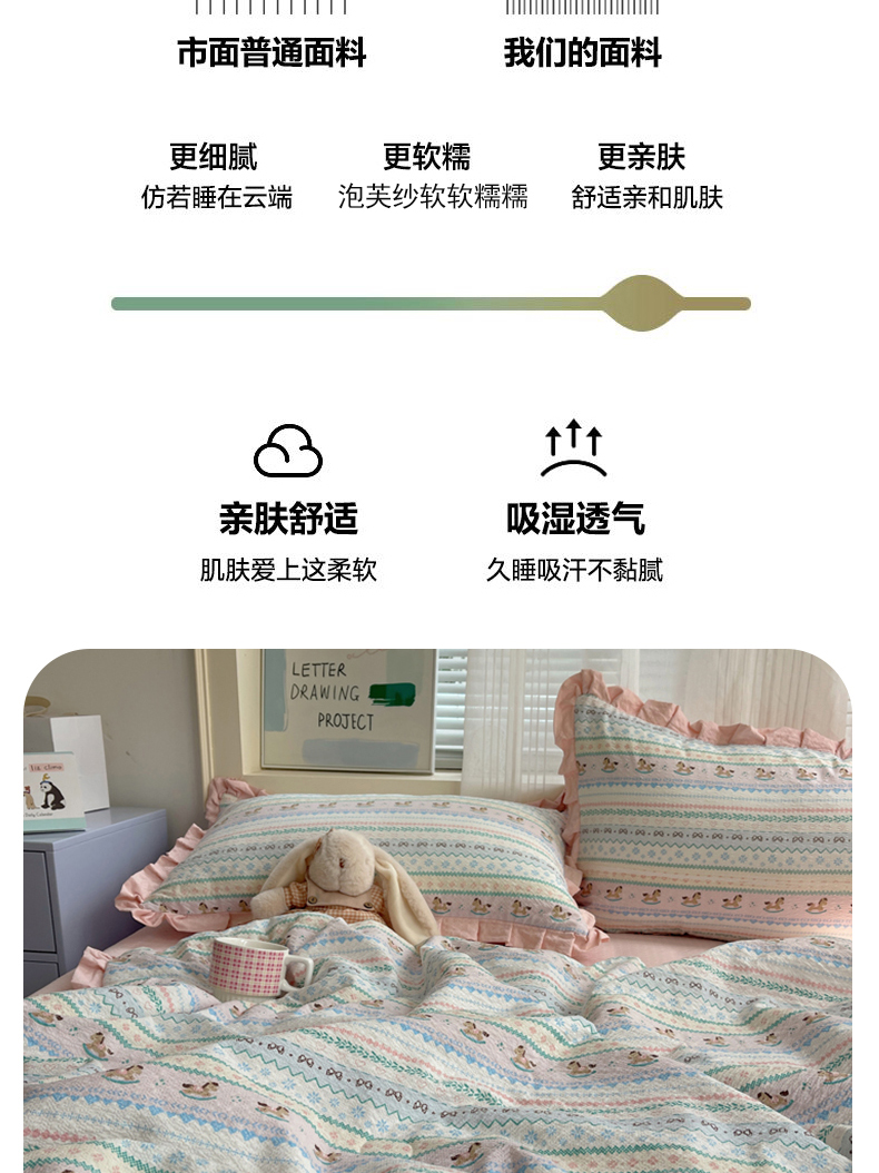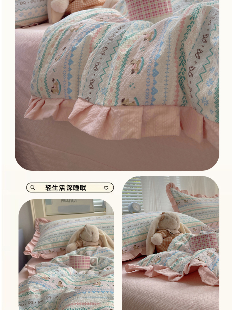 (总)迪梦姿家纺 2026新款高克重泡芙纱泡泡纱床单款四件套系列,兔仔花田,春日甜桃心米,纯宅熊,躲猫猫,花野兔眠,灰樱桃,旧街星星,猫咪集粉,莓系花伐,描线小猫咖,木马小花团,浅沙花影黄,浅沙花影蓝,田园兔,甜喵块块,甜心咖絮,甜心木马卷,小兔裙边,星野蝴蝶结,悦悦小兔,只闻花香,紫雾花蝶集