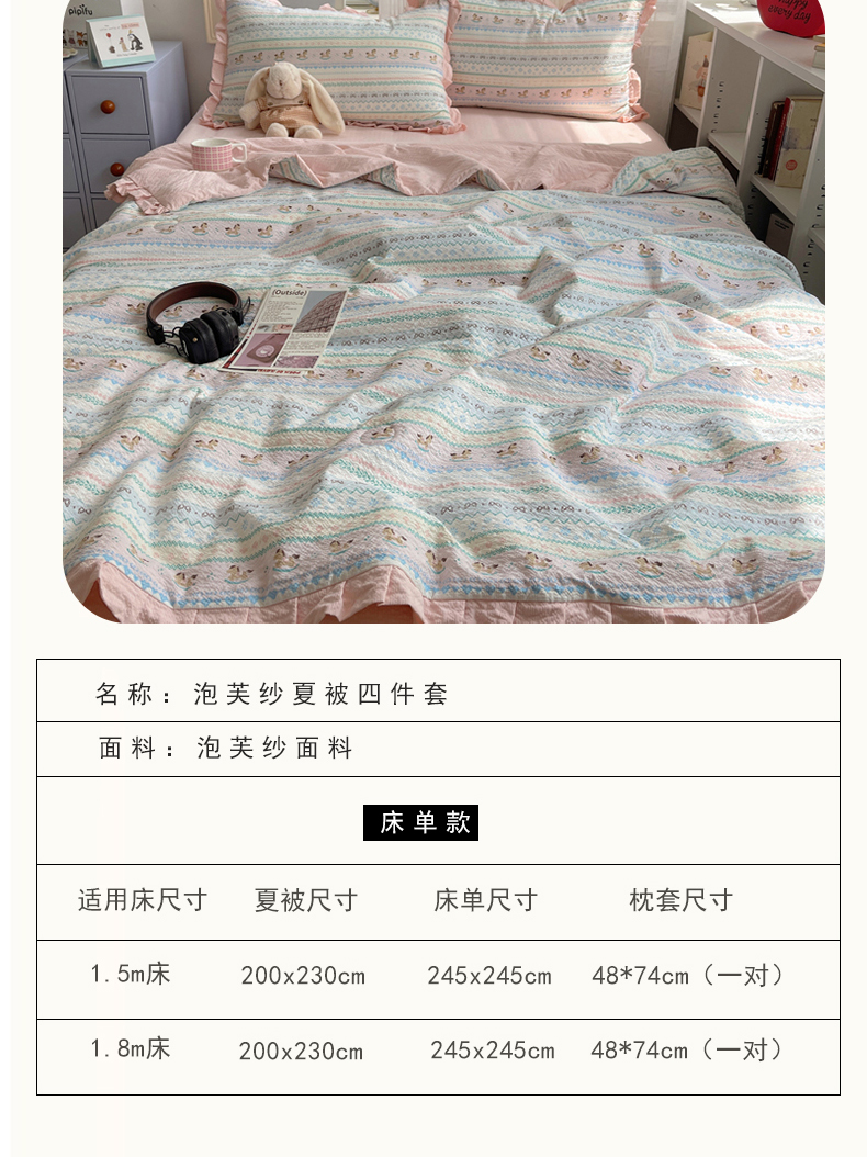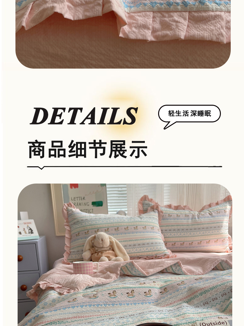 (总)迪梦姿家纺 2026新款泡芙纱花边款夏被四件套,纯宅熊,躲猫猫,旧街星星,可可小猫条,栗色木马纹,满堂红樱花粉,萌物条条,浅夏花信,田园兔,甜喵块块,甜心咖絮,甜心木马卷,兔仔花田,小兔裙边,悦悦小兔,只闻花香,紫雾花蝶集