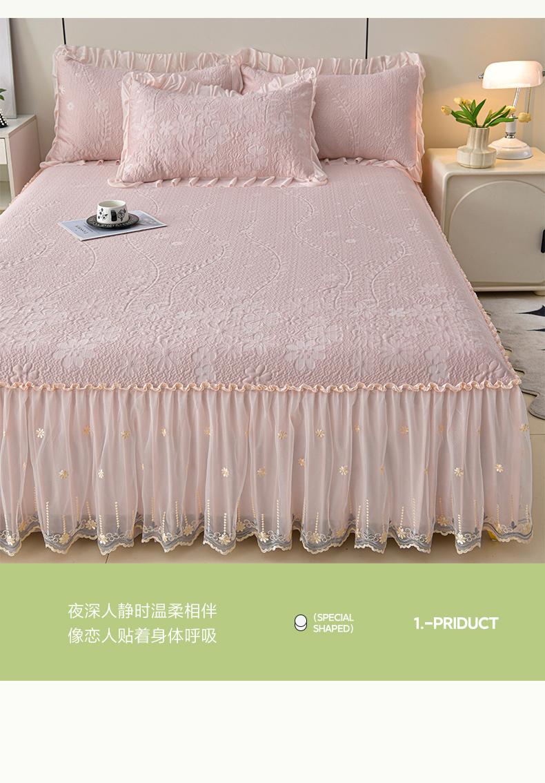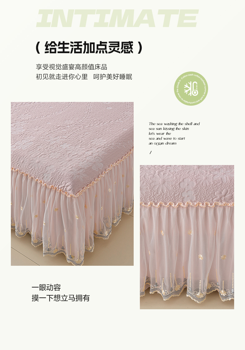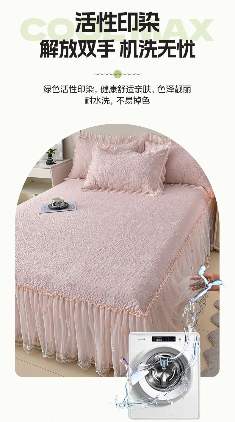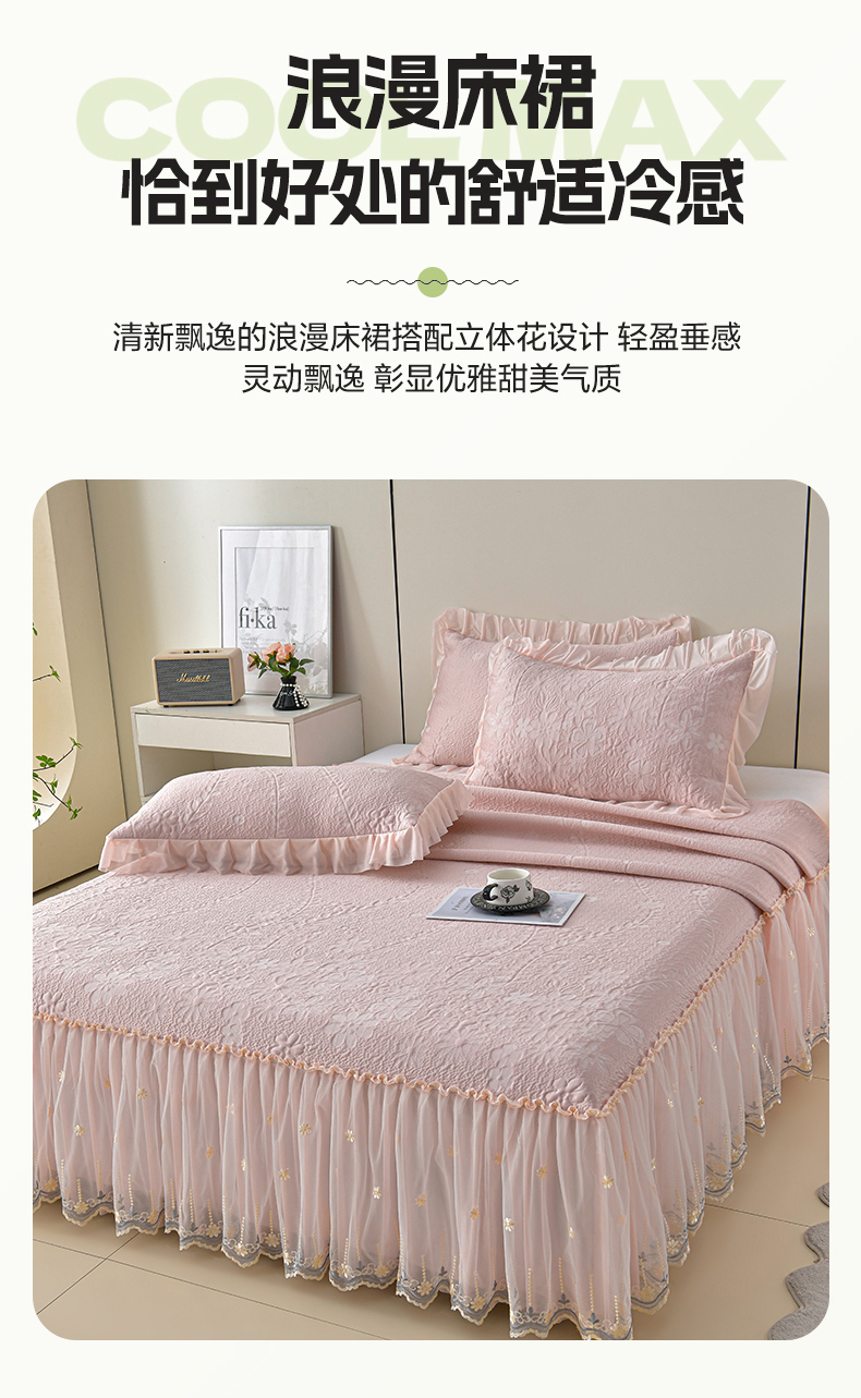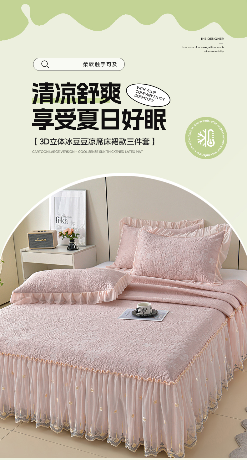 商品名称:畅畅家纺 2026新款花边3D立体冰豆豆冰丝凉席床裙款三件套 漫舞-粉