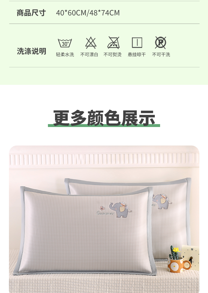 商品名称:(总)小牛席业 2026新款夏日小象冰丝夏凉枕枕头枕芯