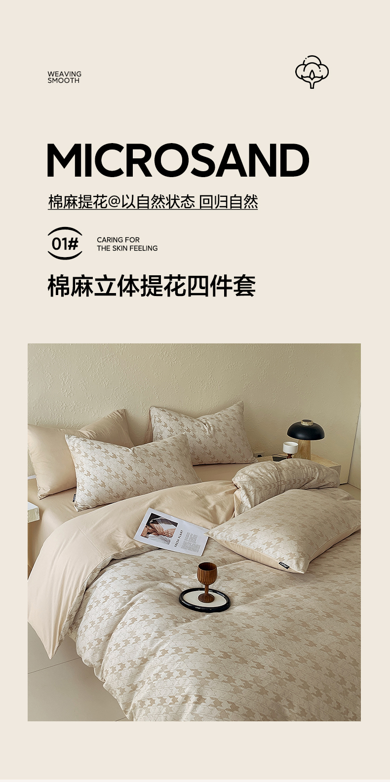 当前位置: 91家纺网 > 商品网购 > 床品套件 > 四件套 > 棉麻四件套 > 小懒猪 2026新款棉麻立体提花四件套 棉麻千鸟格