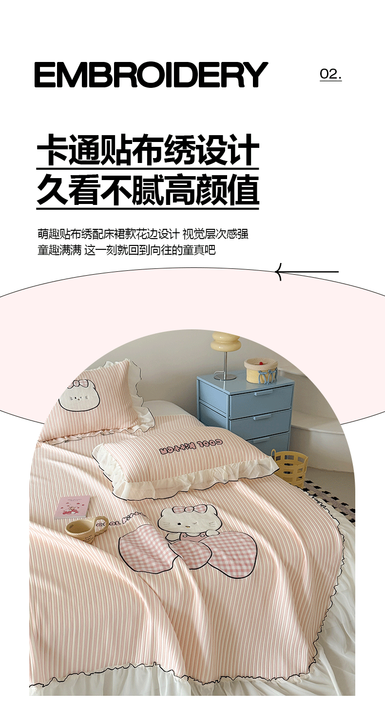(总)吾欢心 2026新款卡通贴布刺绣高克重乙纶PE凉席席子三件套床裙款,旋转木马白,旋转木马粉,旋转木马蓝,组合图仅供展示不可下单