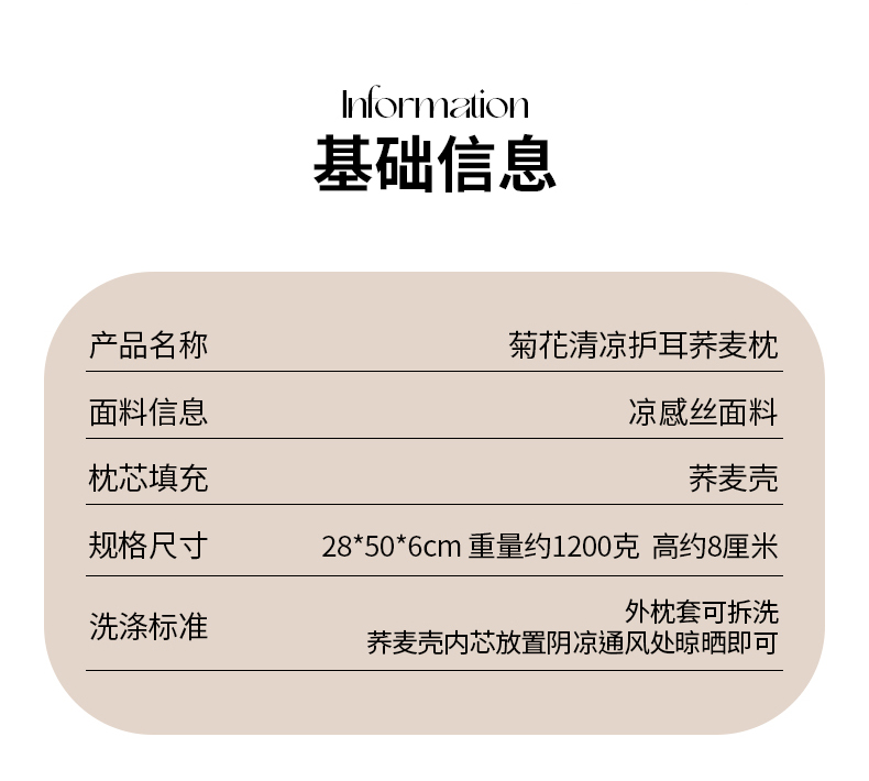 商品名称:(总)仁宇枕业 2026新款新品夏凉清凉冰凉菊花荞麦护耳护头枕头枕芯