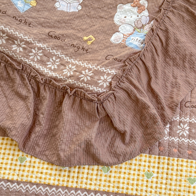 (总)仟网汇 2026新款法式花边泡芙纱双层纱床单床盖夏被夏凉被空调被四件套密拷花边款,波西米亚,春日花花,好柿发生,红红星人,灰调花园,焦糖小熊,马到成功,梦幻星人,奶糖猫咪,奶油啵啵,小云朵,紫罗兰