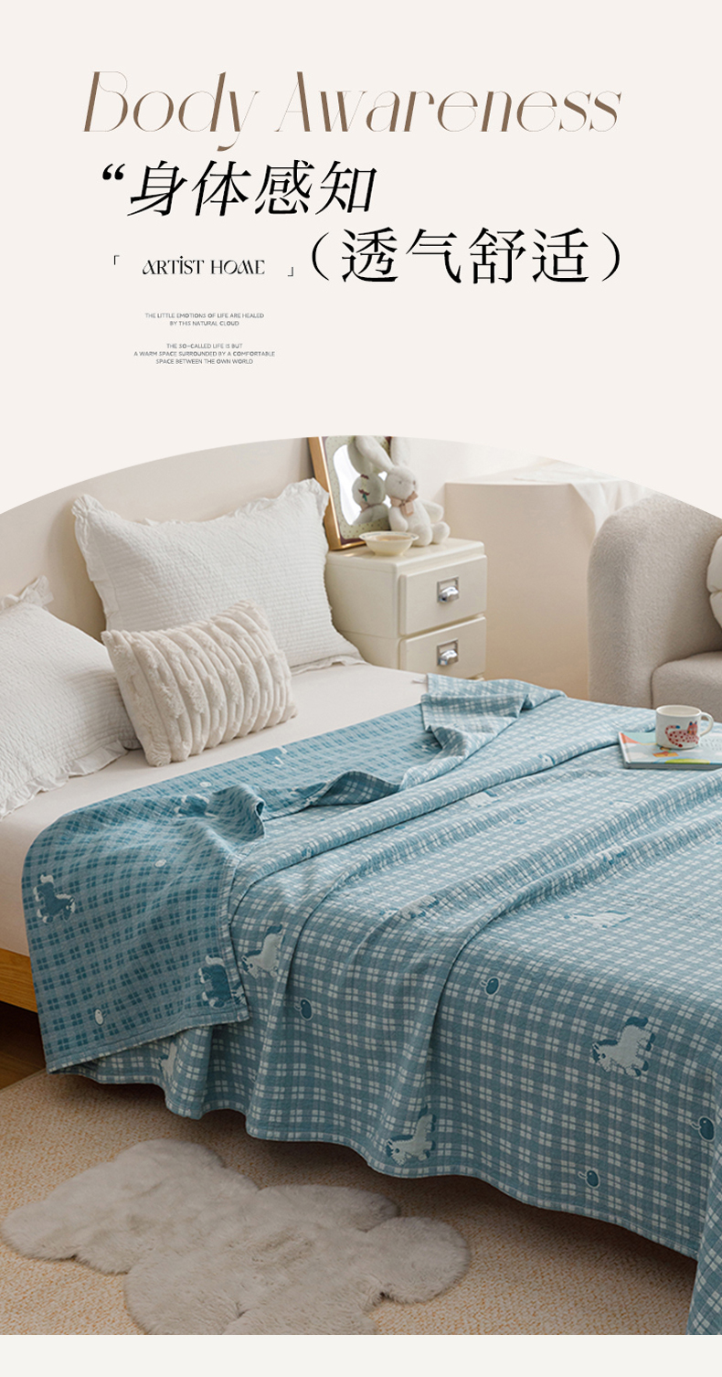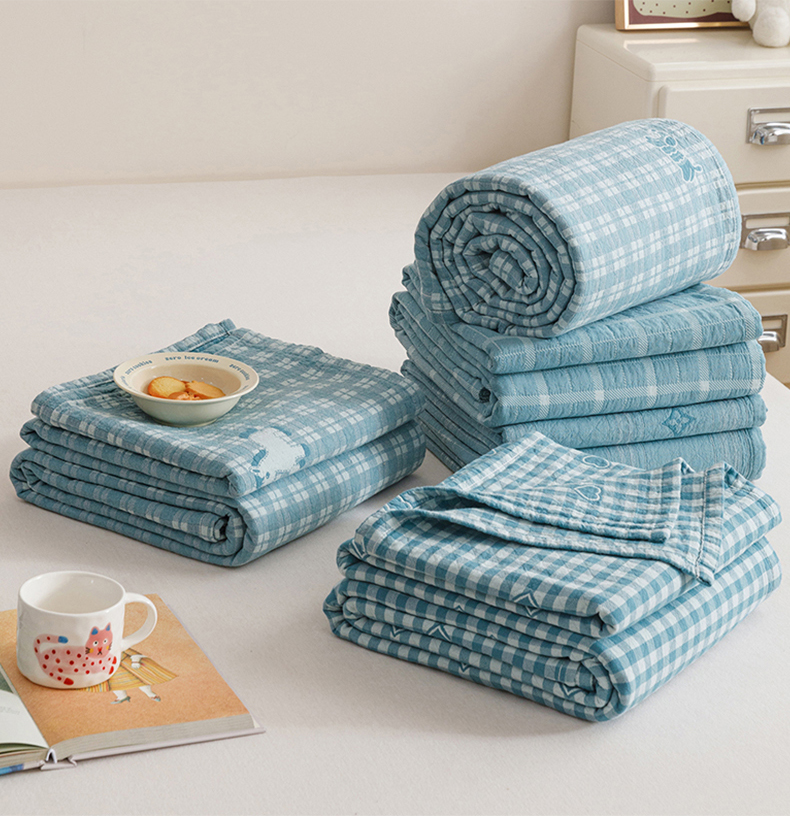 (总)悦然毛巾被 2026新款色织水洗棉盖毯安心棉床盖全棉纱布毛巾被夏被夏凉被空调被,组合图仅供展示不可下单,蓝格萌马,蓝格小狗,蓝格心语,蓝格星芒,蓝格熊语