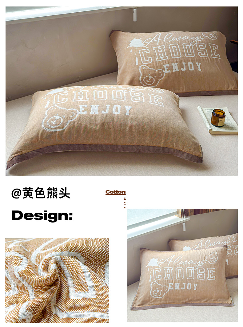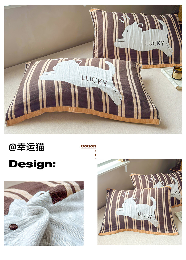 (总)乐家毛巾被(工厂自产自销) 2026新款全棉纯棉四层纱布枕巾,草莓面包,春日物语,纯色樱桃,耳机小熊,格纹草莓,黄色熊头,简约条纹,可颂面包,毛绒小兔,毛线小猫,蘑菇兔,南瓜派对,软糯云朵,三只小狗,森林小兔,生日小猫,甜心兔,顽皮熊猫,晚安小熊,五只小猫,心心猫咪,幸运猫