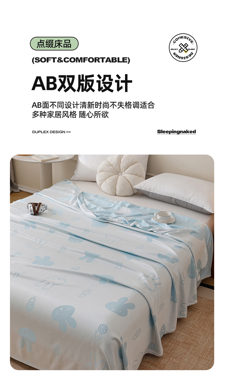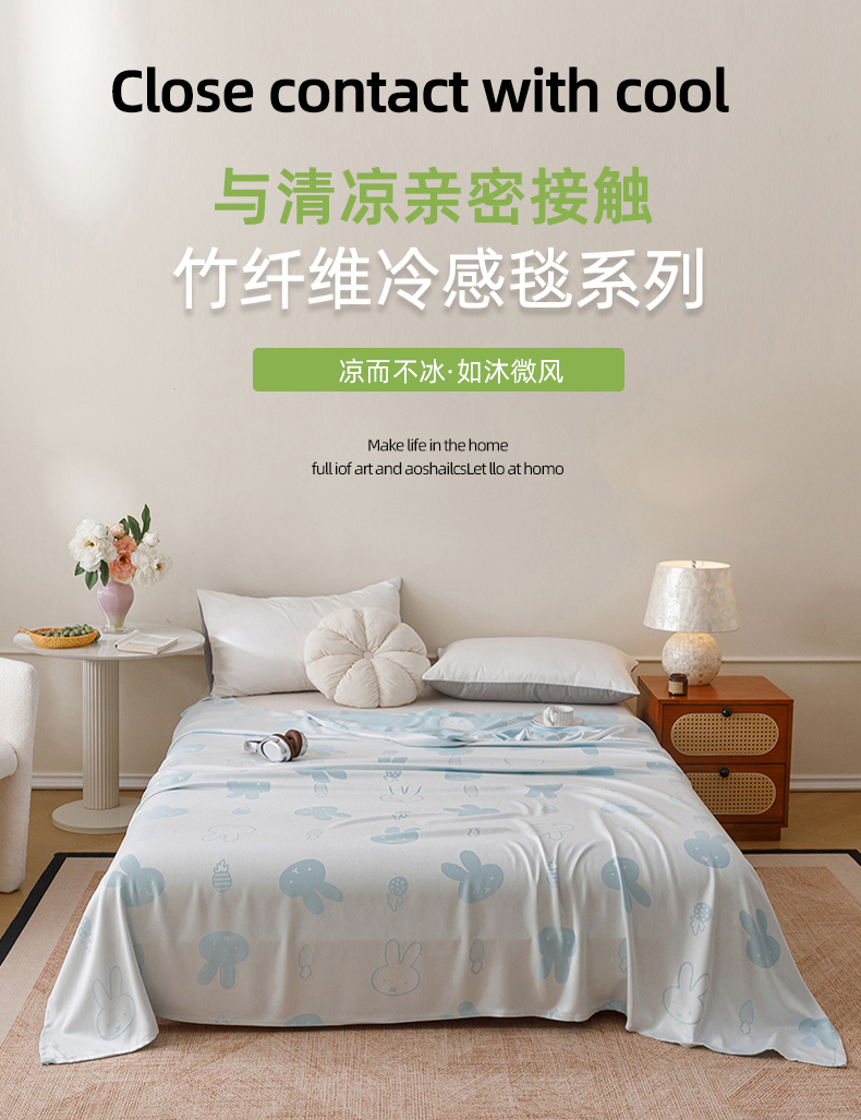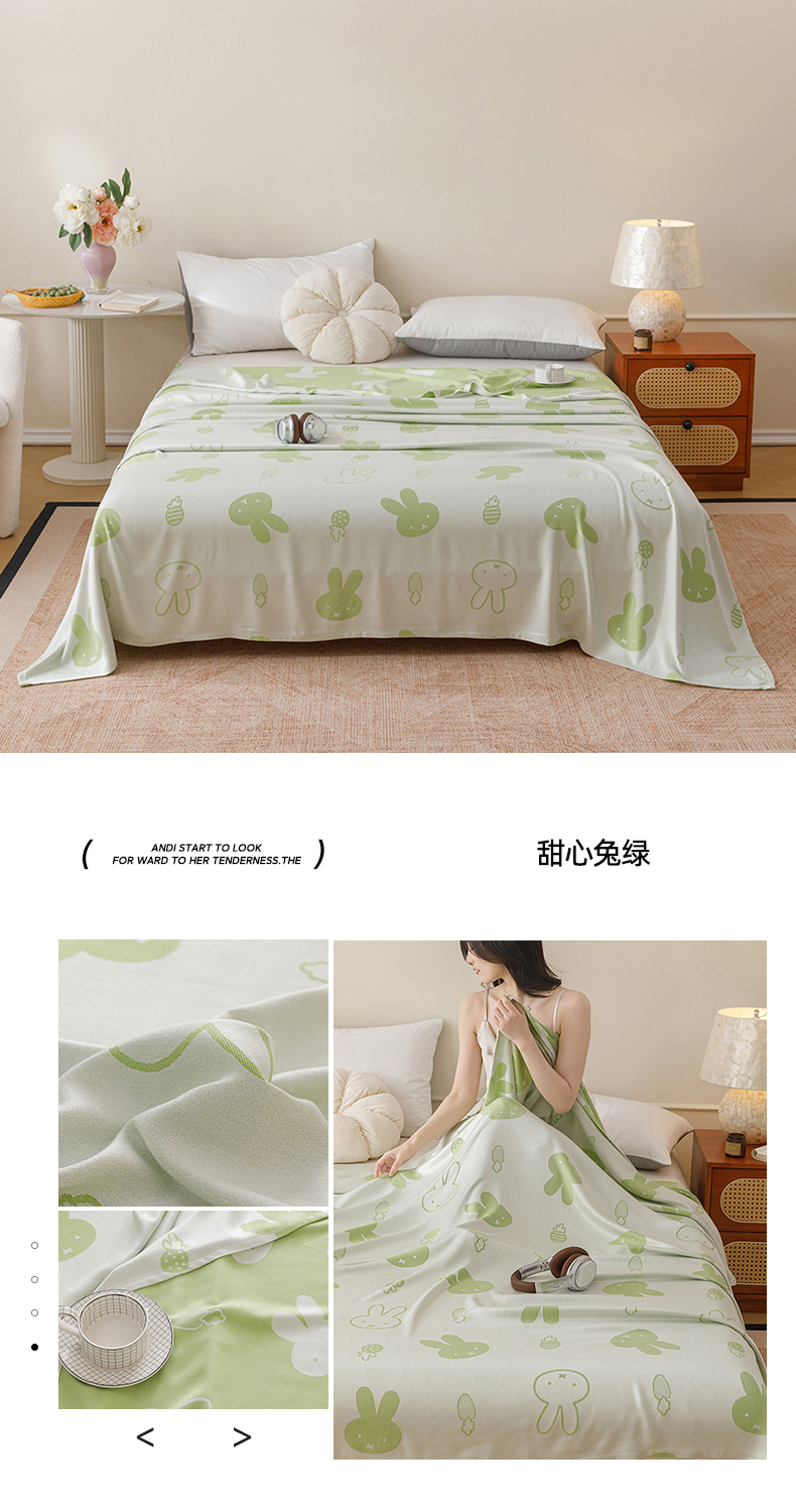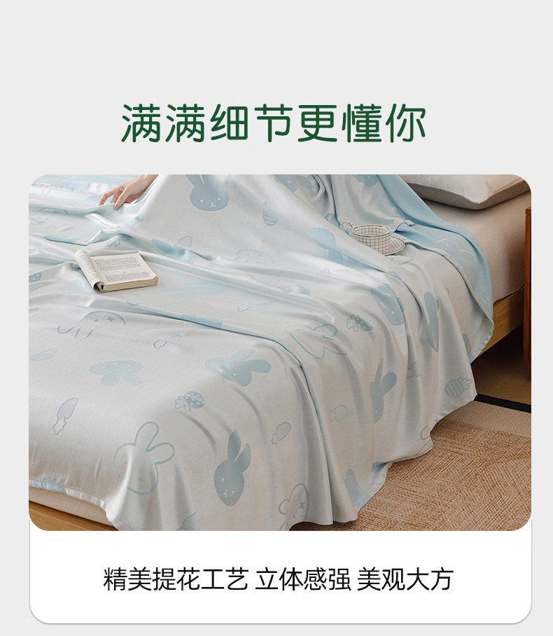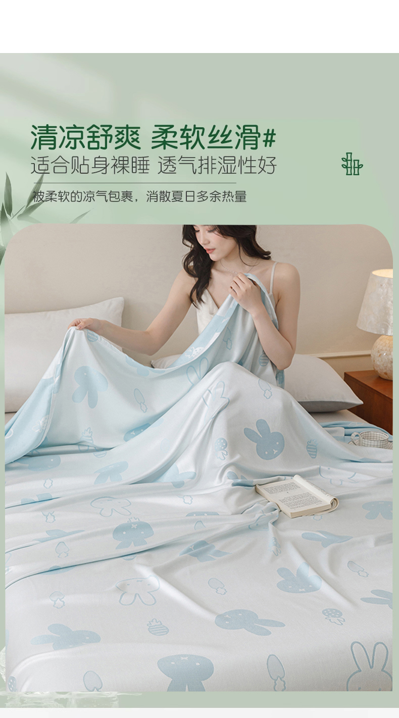 (总)悦然毛巾被 2026新款竹纤维冷感毯单层毛巾被夏被空调被斜纹提花叶子卡通,甜心兔粉,甜心兔蓝,甜心兔绿,甜心兔银,竹间花粉,竹间花蓝,竹间花绿,竹间花银