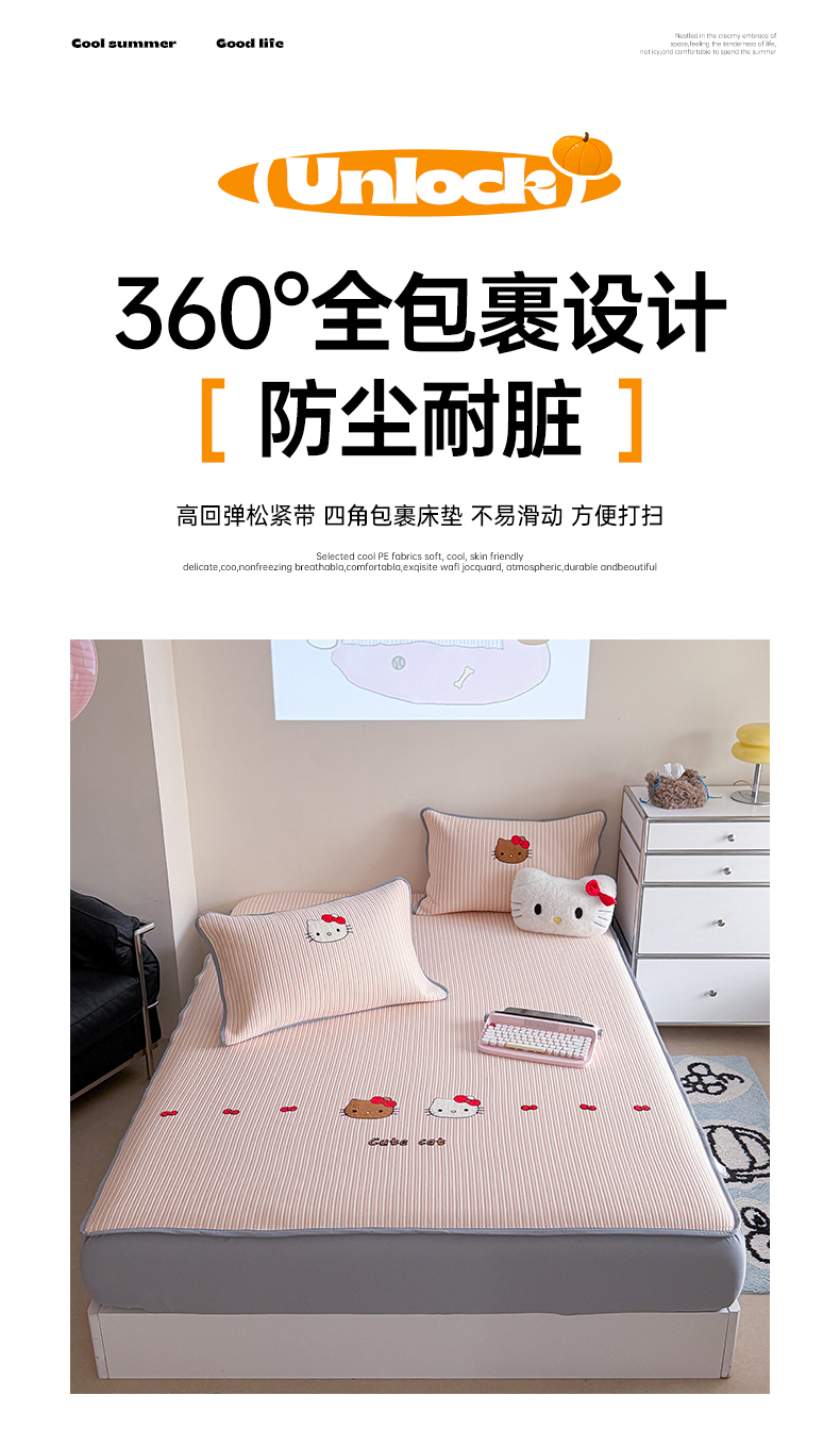 (总)暖生活 2026新款3DMAX超凉感原创PE冰丝软席子凉席-床笠款,组合图仅供展示不可下单,蝶语甜喵,粉条KT,蜜蜂小熊,奶蓝星兔,茄子企鹅,小狗乐园