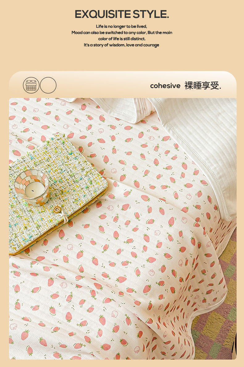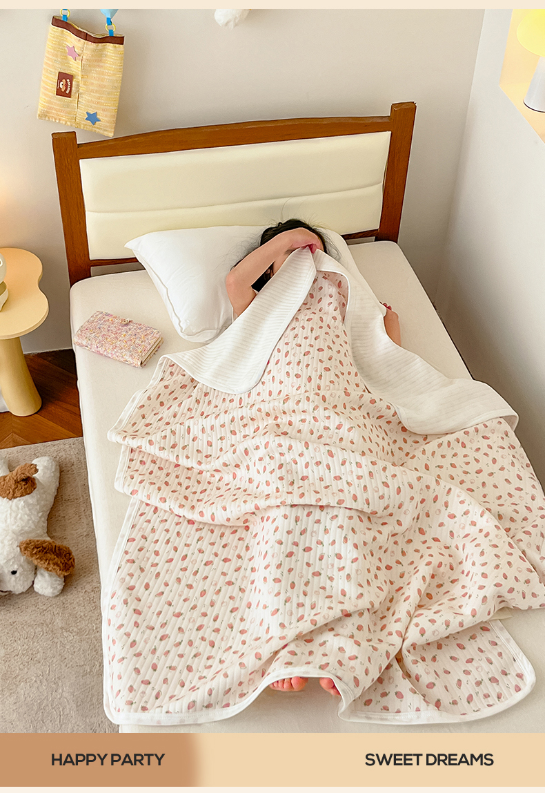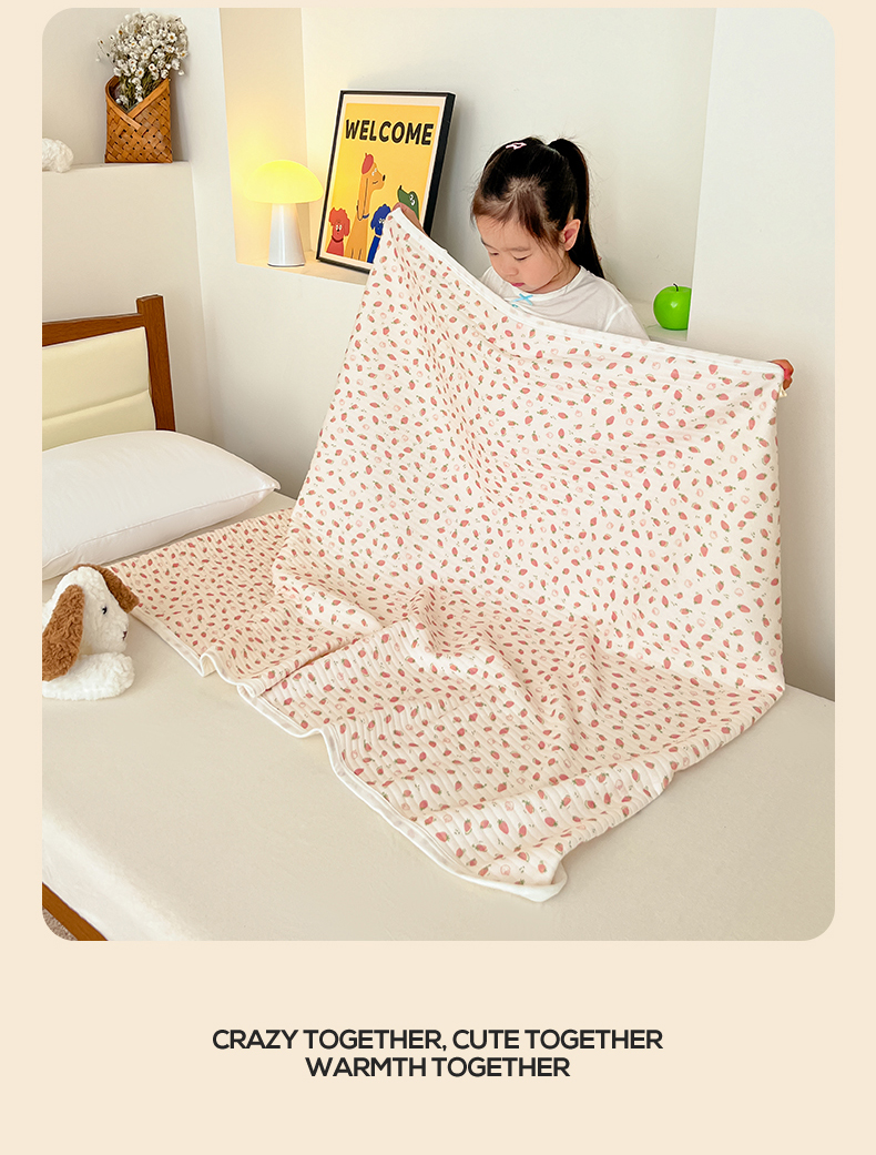 布凡家居 2026款A类全棉纯棉空气印花夏被盖毯幼儿园午睡盖毯 儿童盖毯-草莓多多