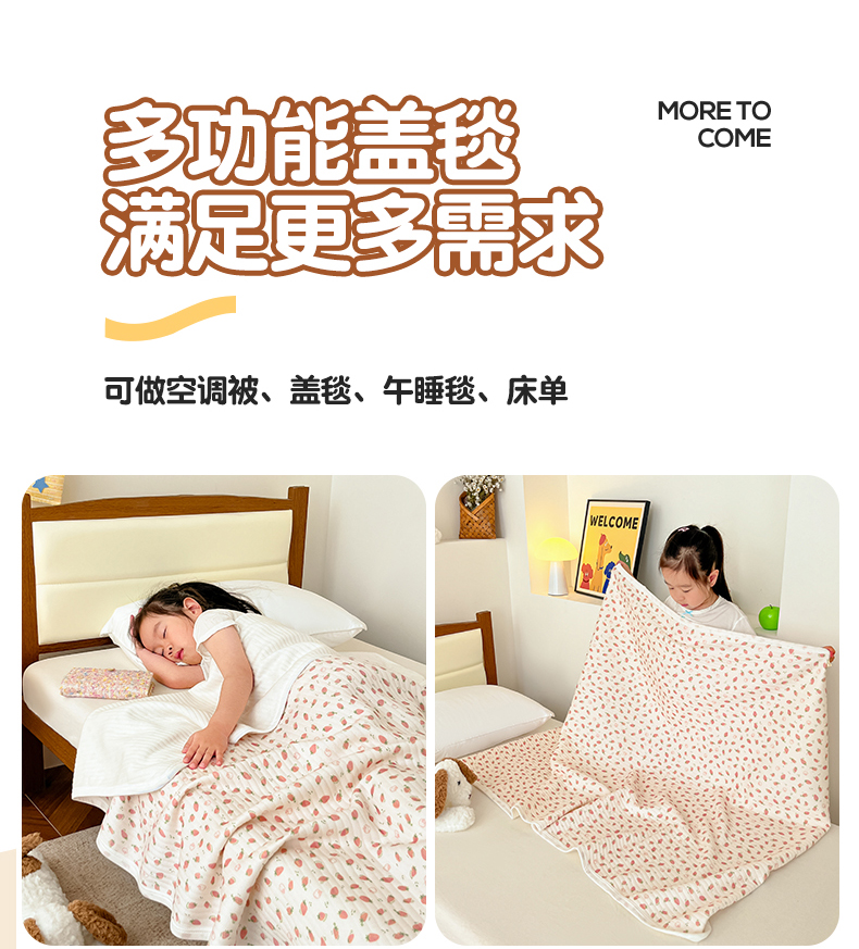 商品名称:布凡家居 2026款A类全棉纯棉空气印花夏被盖毯幼儿园午睡盖毯 儿童盖毯-草莓多多