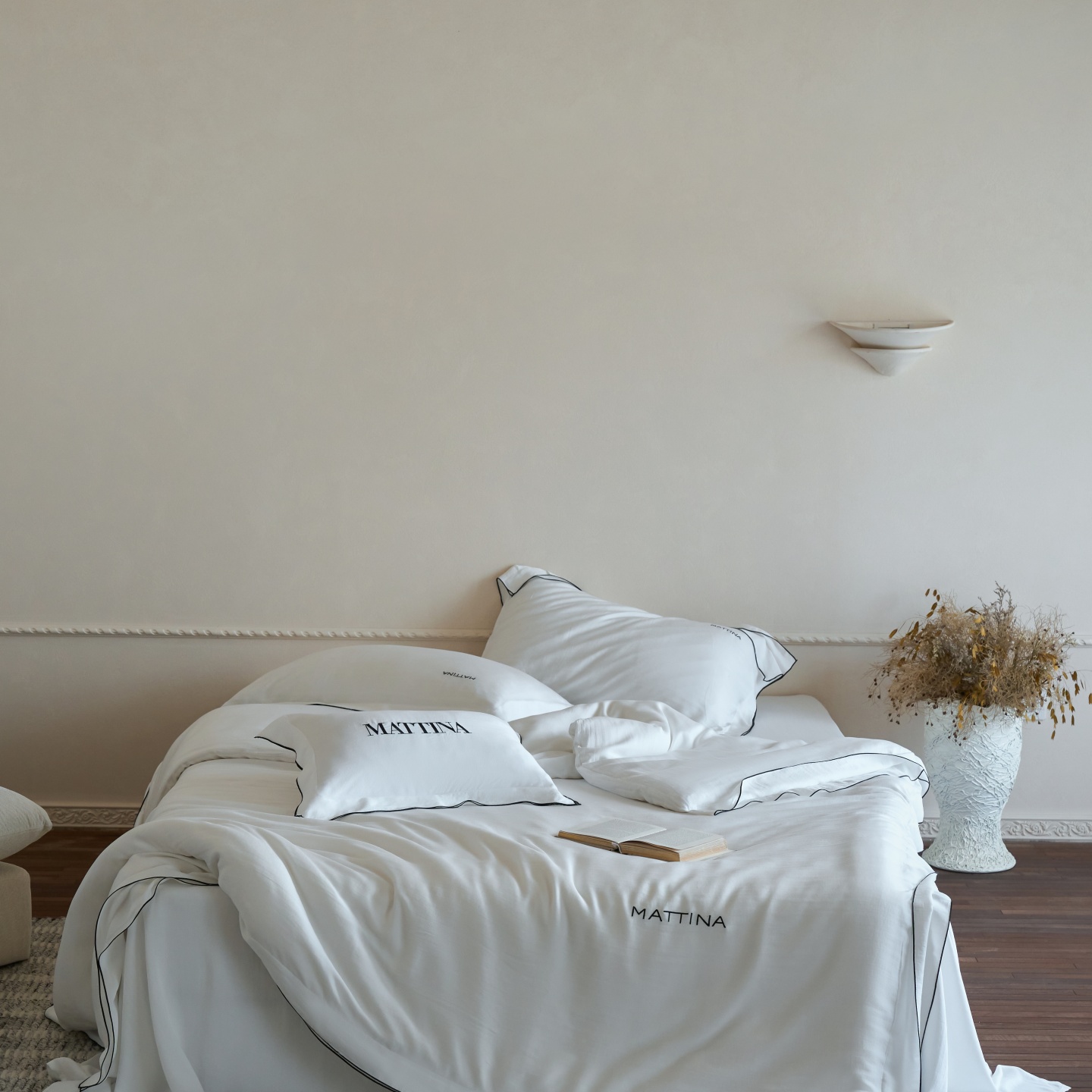 (总)安莱生活 2026新款天丝棉滚边款刺绣织序系列四件套,织序-白咖,织序-白巧,织序-摩卡,织序-银灰