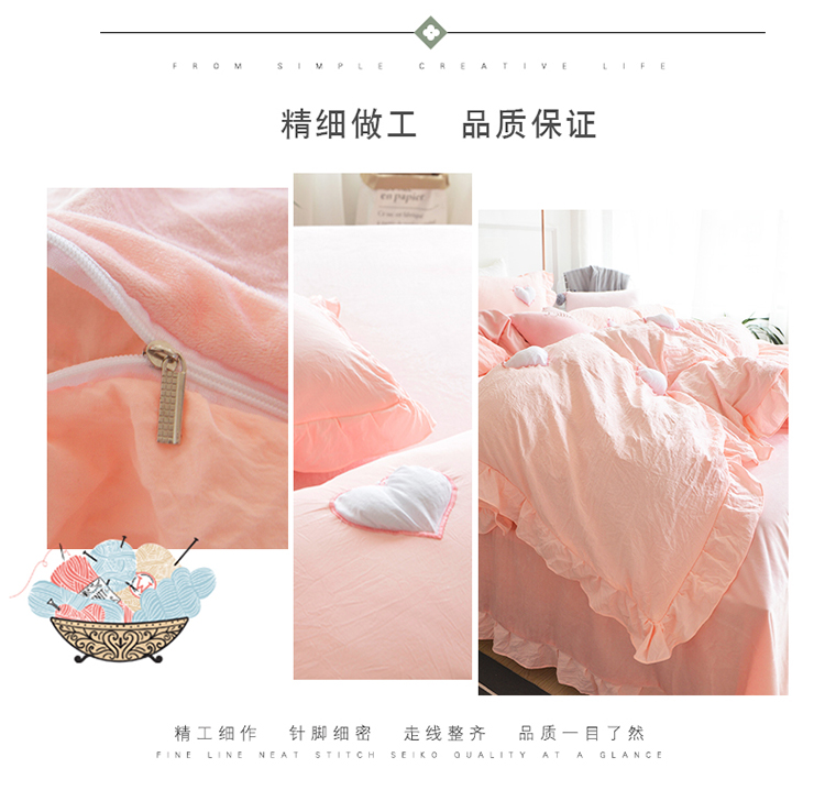 (总)艾米家居 韩版公主风水洗棉+水晶绒立体绣四件套