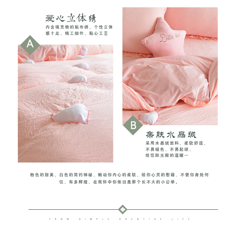 商品名称:(总)艾米家居 韩版公主风水洗棉+水晶绒立体绣四件套
