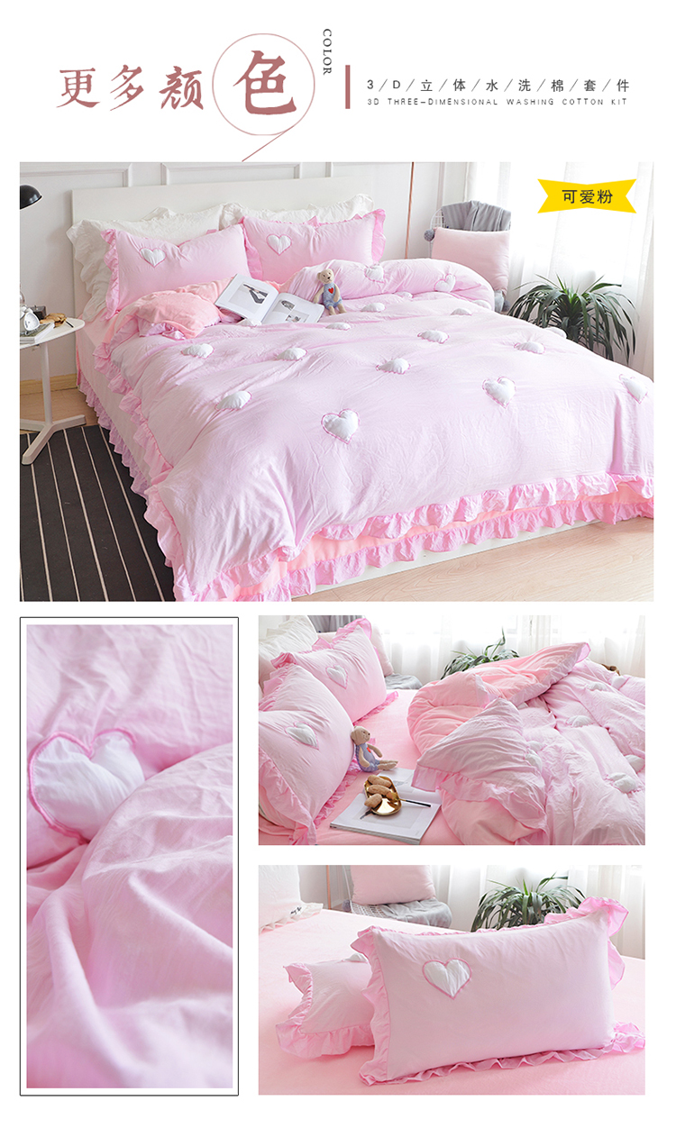 (总)艾米家居 2025新款水洗真丝刺绣四件套-爱心系列,爱心白,爱心豆沙,爱心粉,爱心黄,爱心水绿