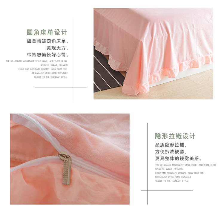 (总)艾米家居 2025秋冬新款牛奶绒泡泡印花花边四件套,豆沙条纹粉,蝴蝶花,太阳花