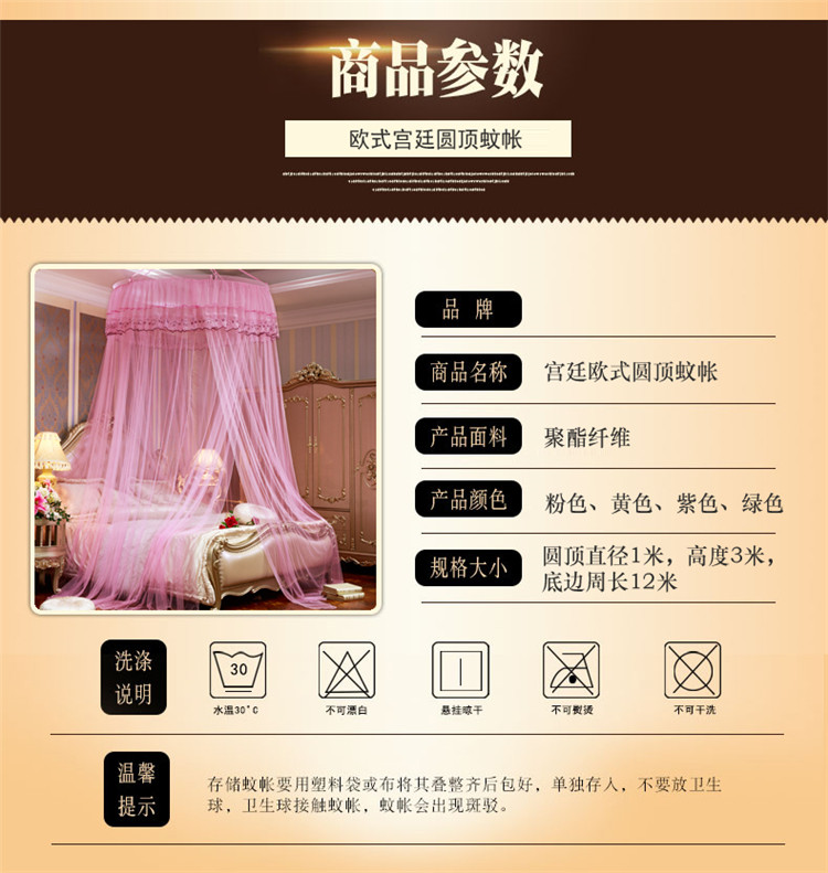 商品名称:雪姿家纺 吊挂圆顶蚊帐系列(梦之雅)粉色